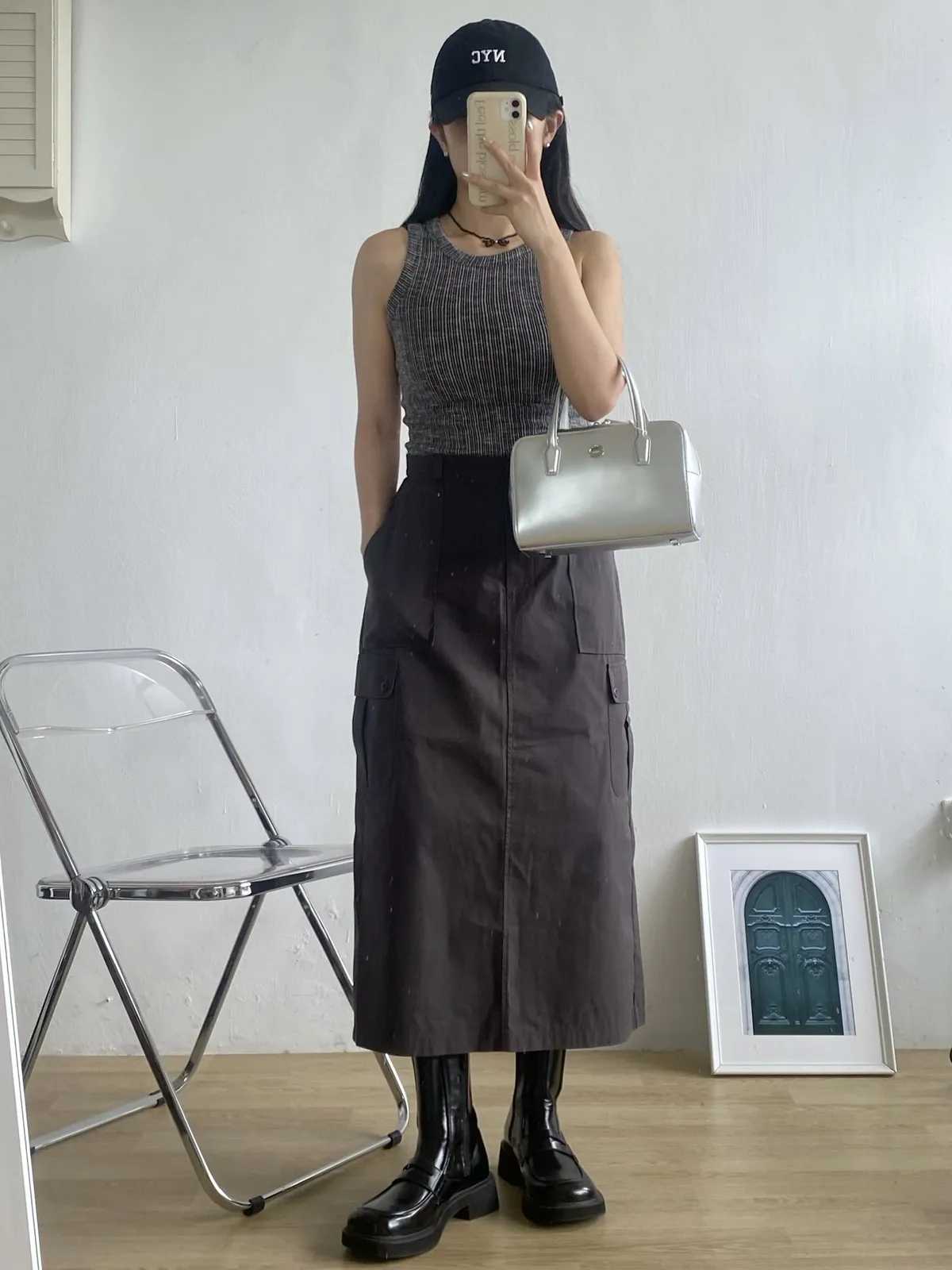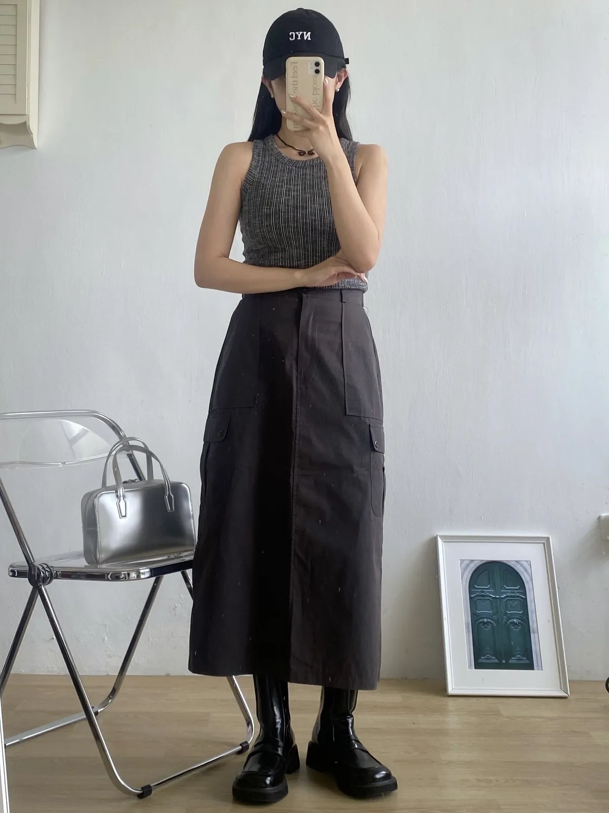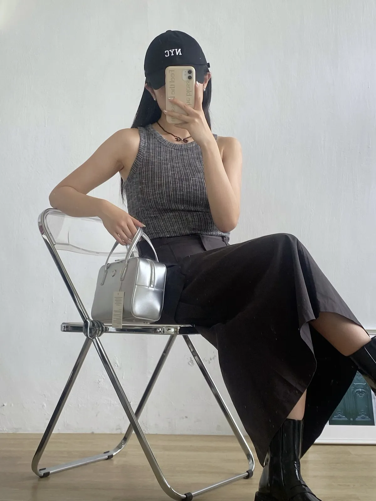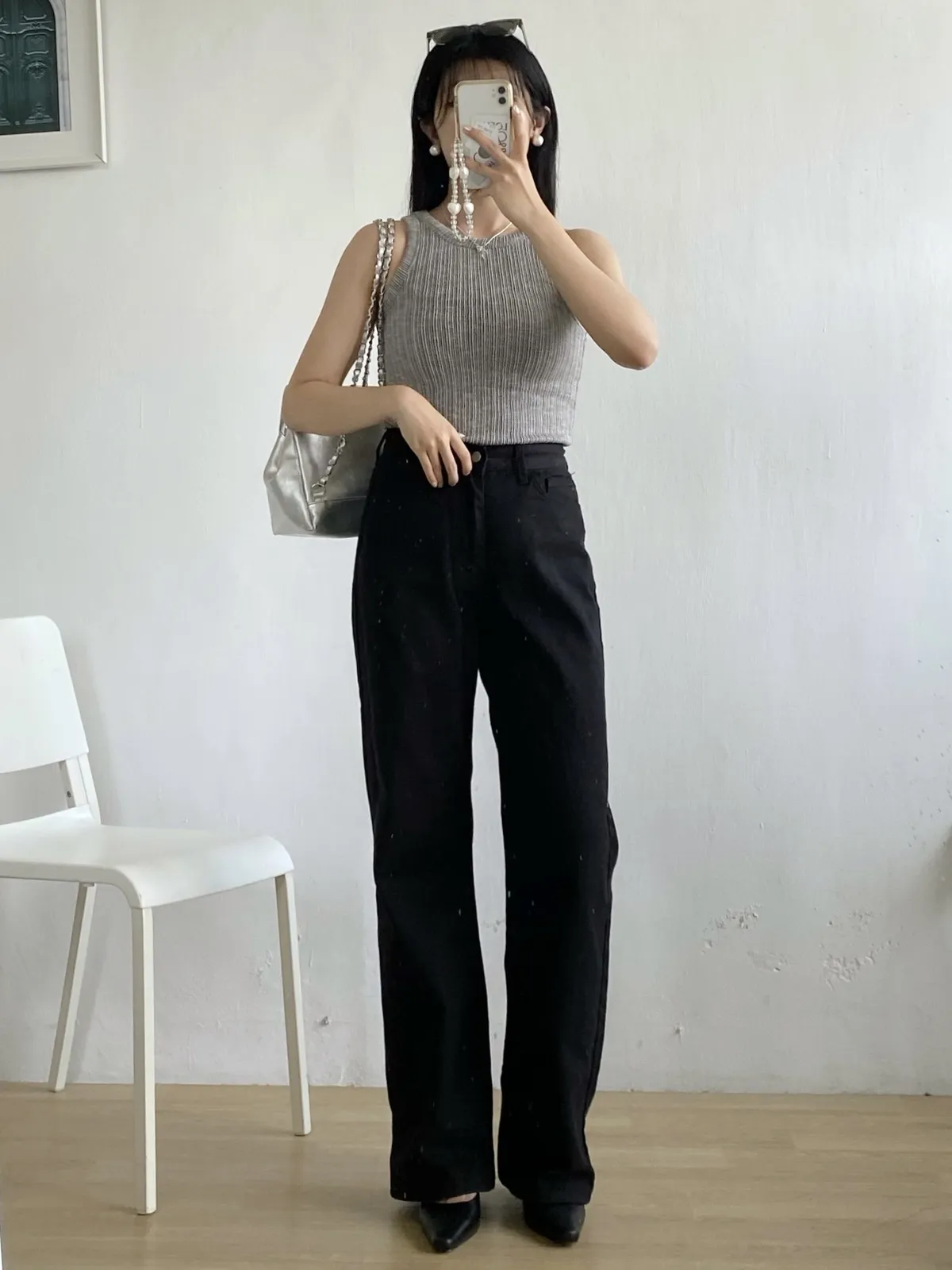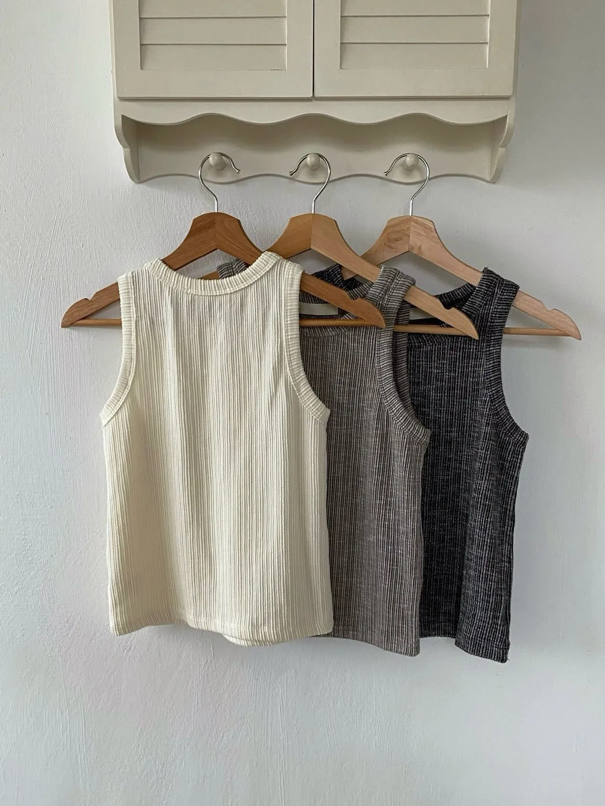 ▻(杏、黑現貨)有磅數雜訊挖肩針織背心/ 3 colors