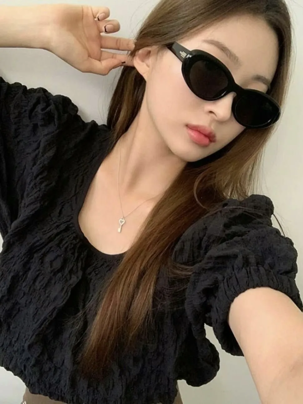 ▻(現貨)正韓🇰🇷抗UV400甜酷風橢圓墨鏡/2 colors