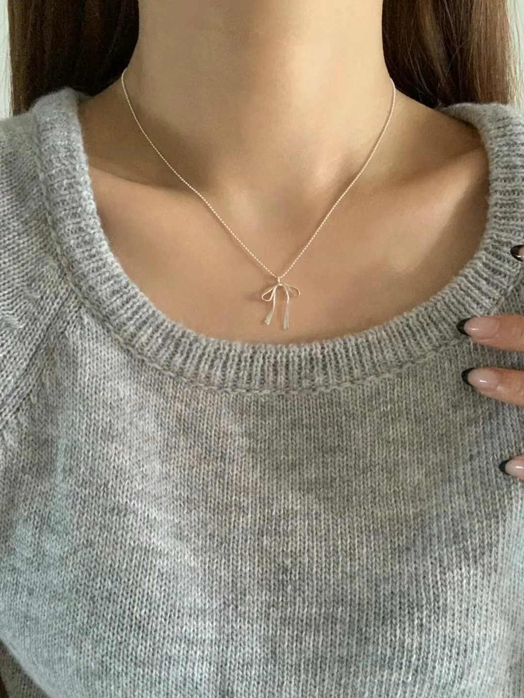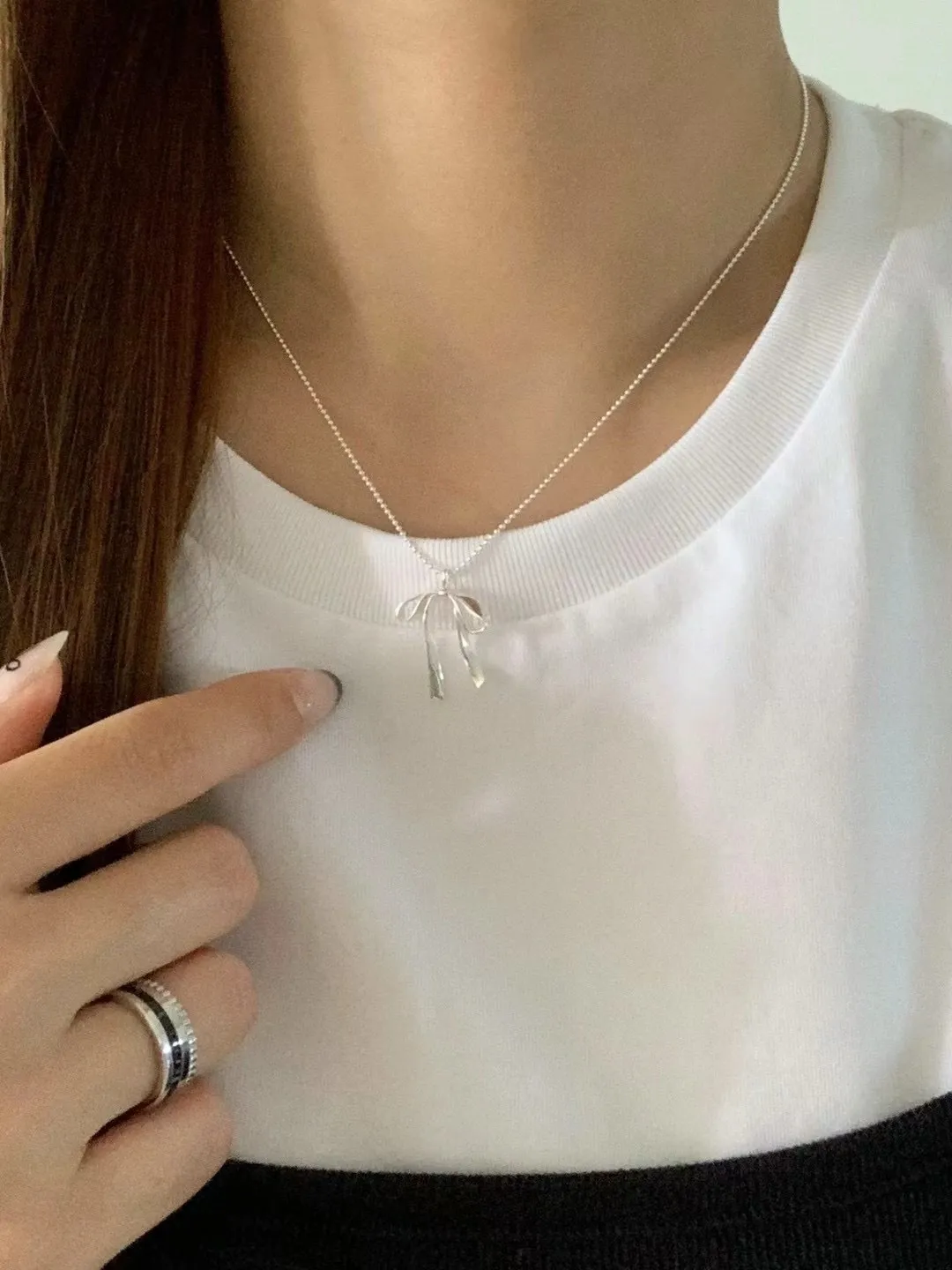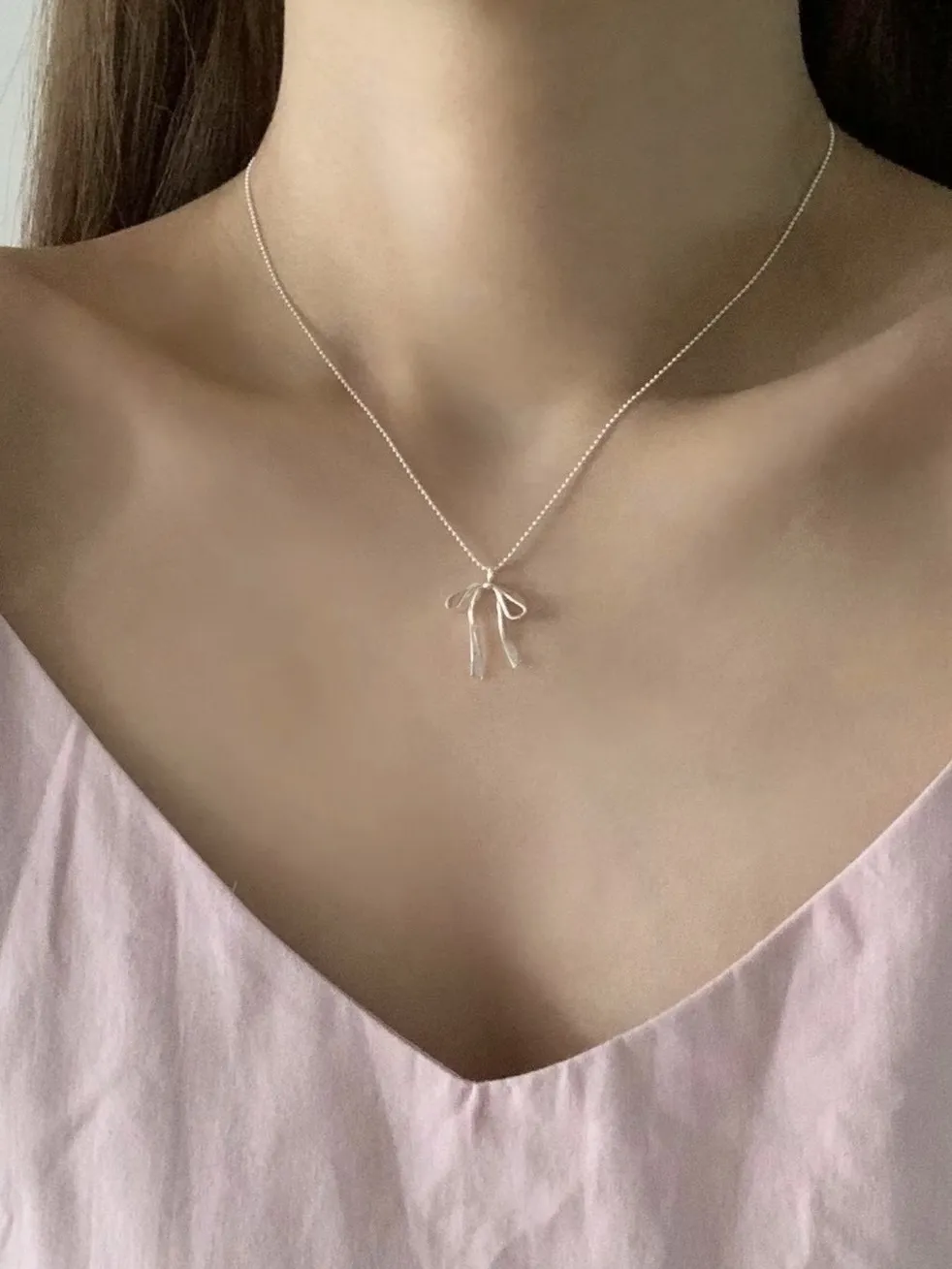▻(現貨)正韓🇰🇷silver925垂墜天使ꔫ蝴蝶結項鍊/1 color