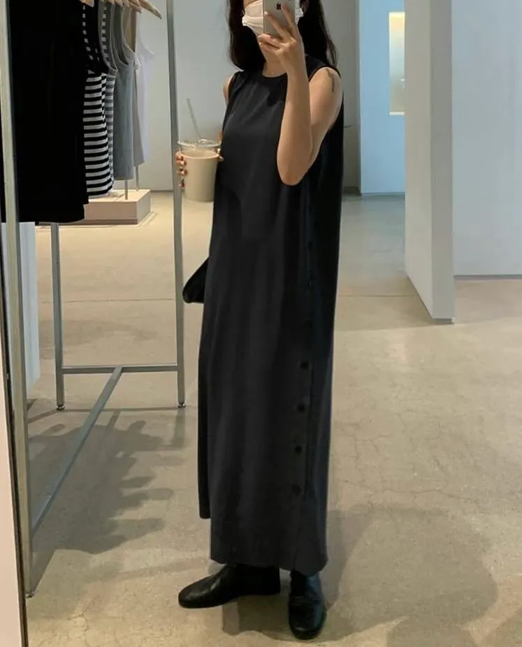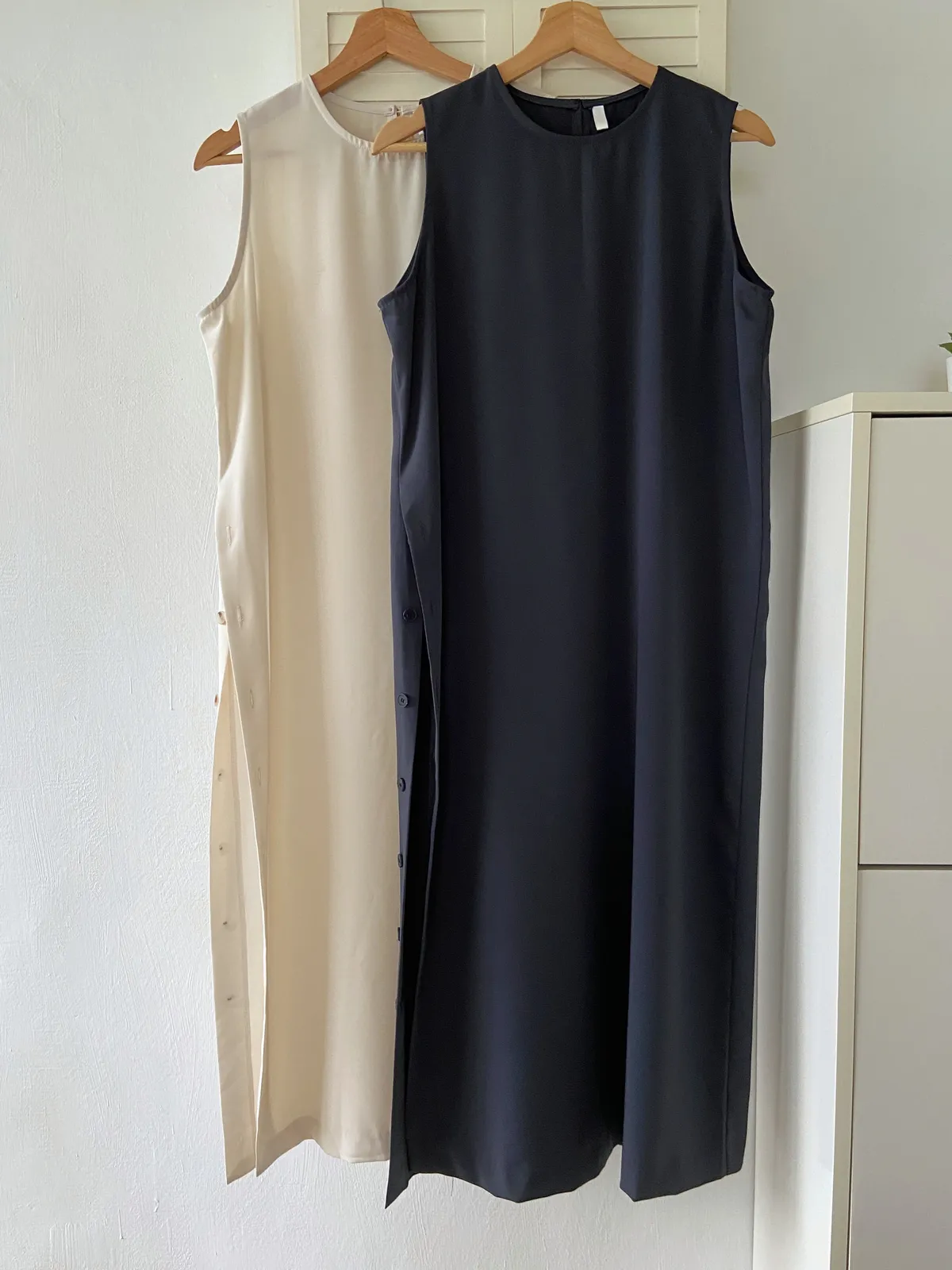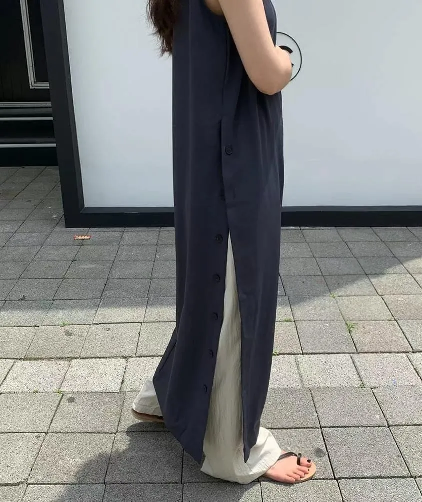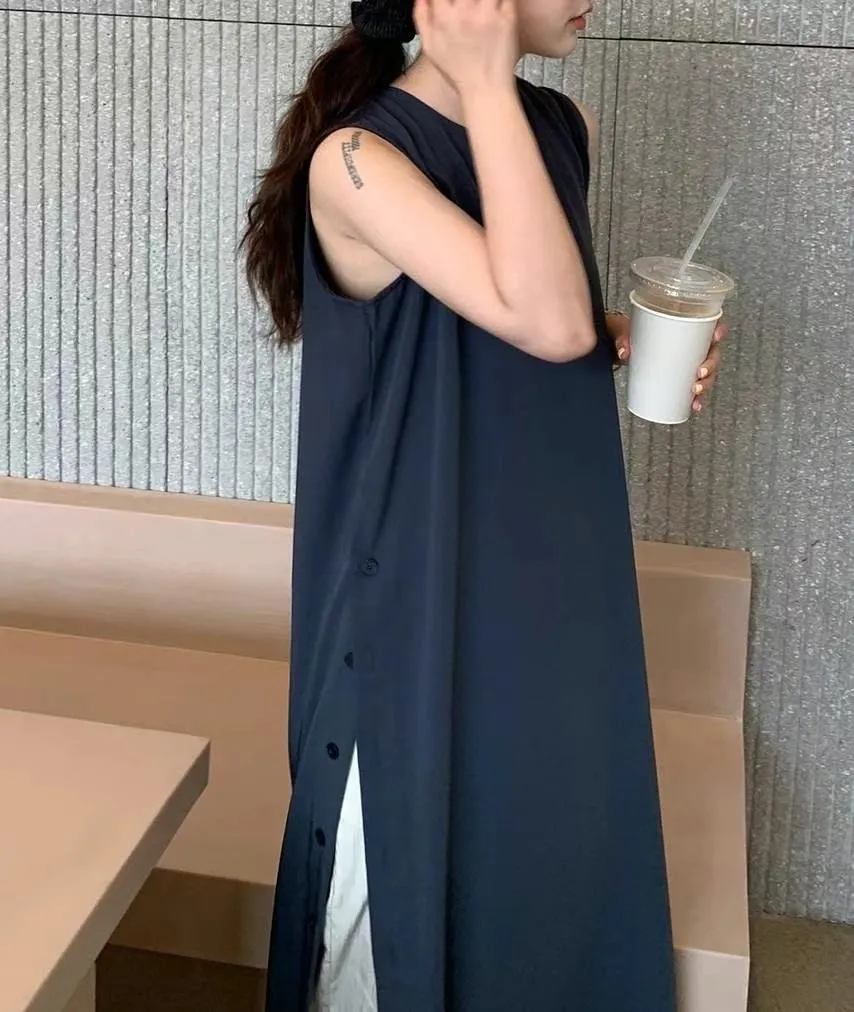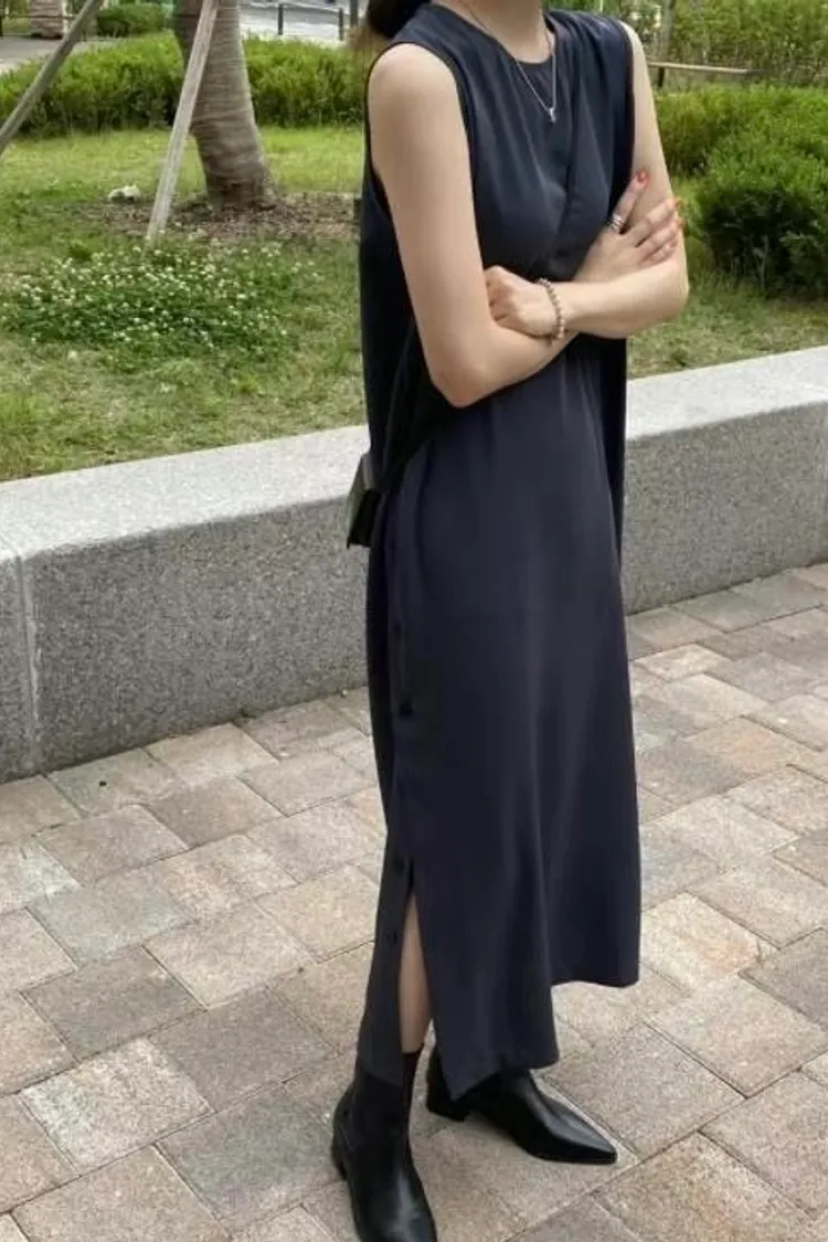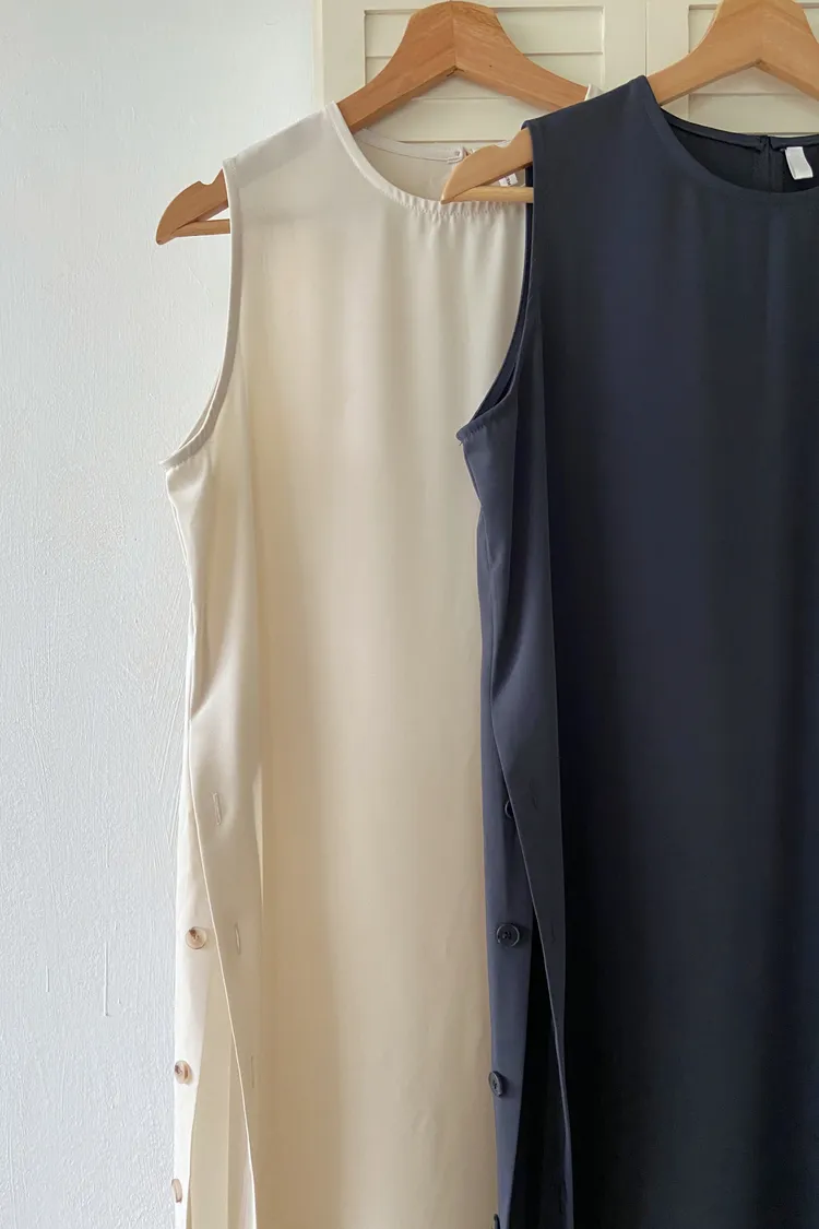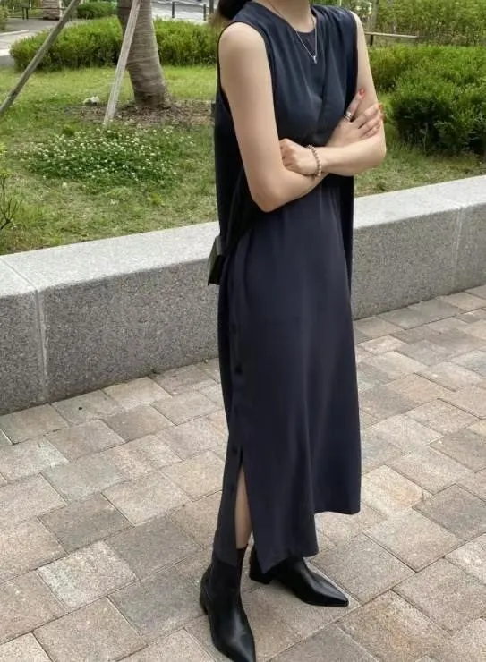 。滑布材質 質感非常好 又很涼爽非常適合春夏🧊。單側排釦設計 可以自行調整開度🔧。屬於不易皺材質✨。可兩穿!當罩衫、洋裝---Made in korea---Model 163/54腰圍68 臀圍90 大腿圍51現貨1-3天內安排寄出預購7-30天工作天(不含假日)內到貨