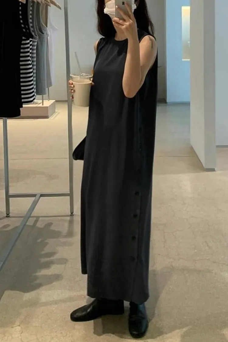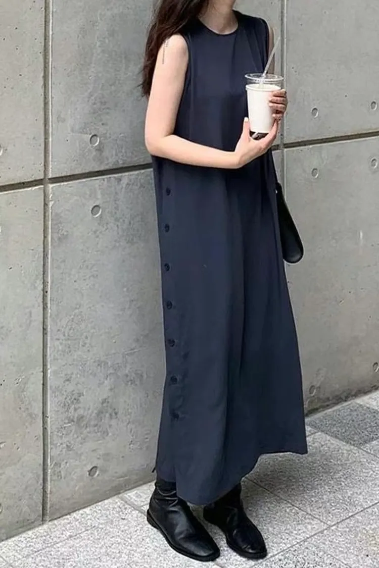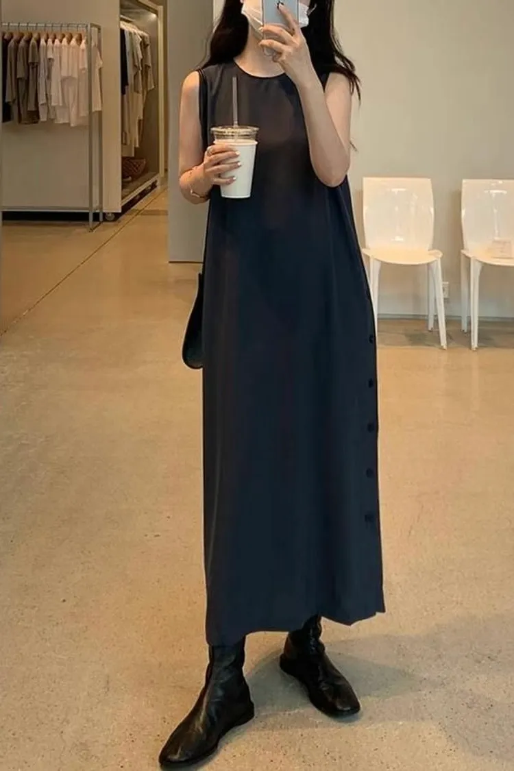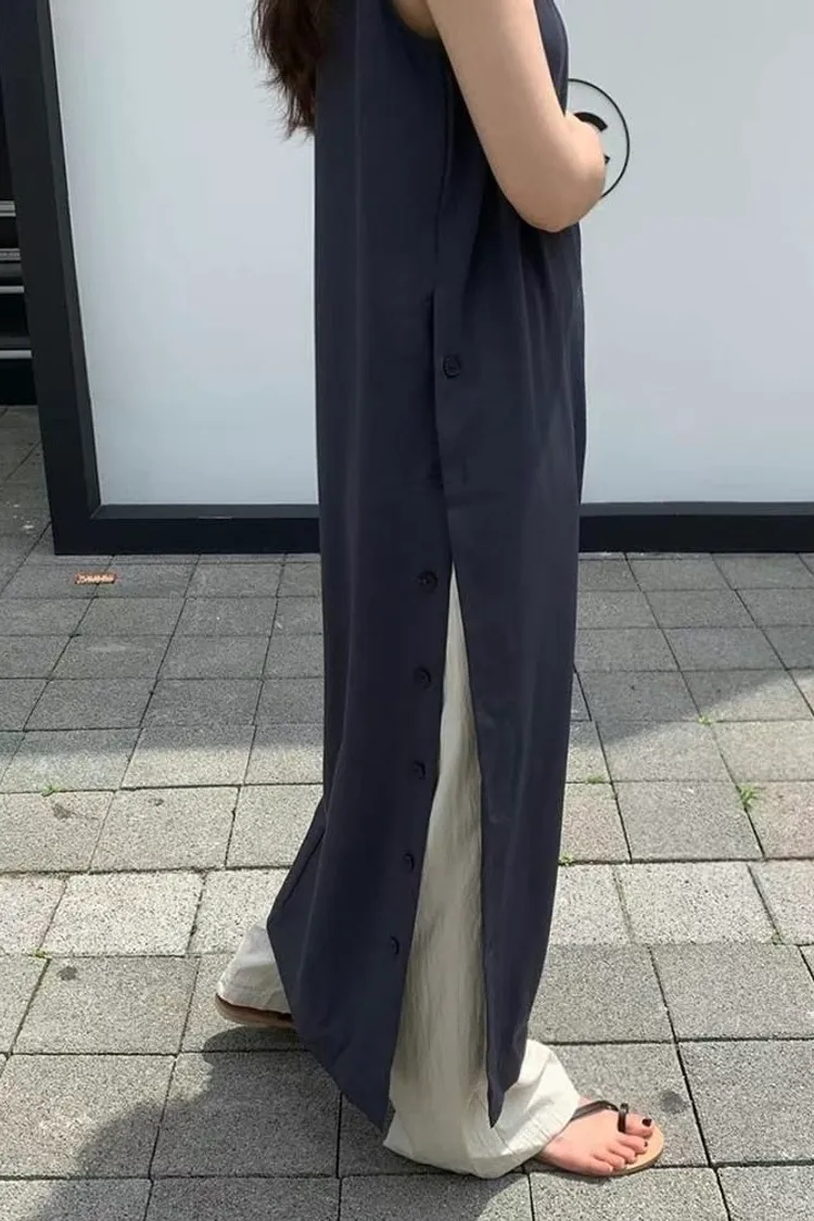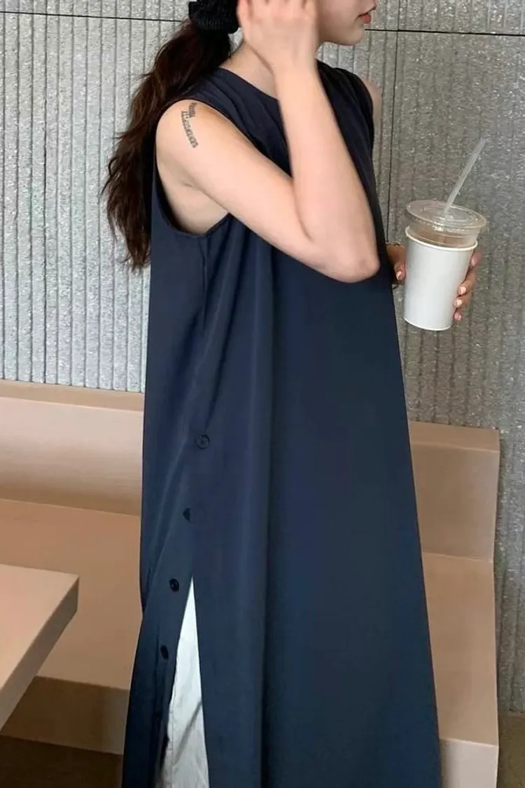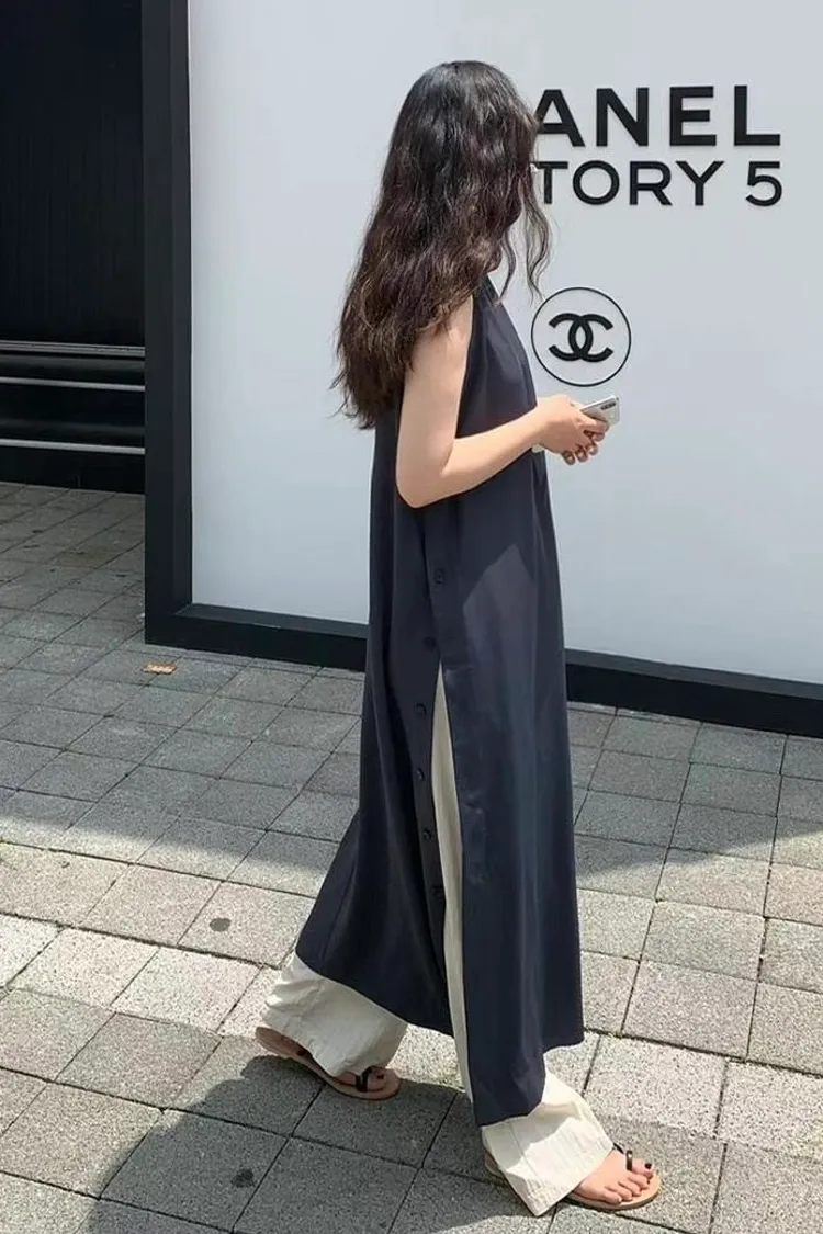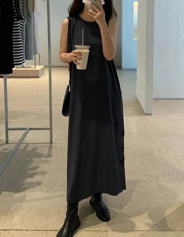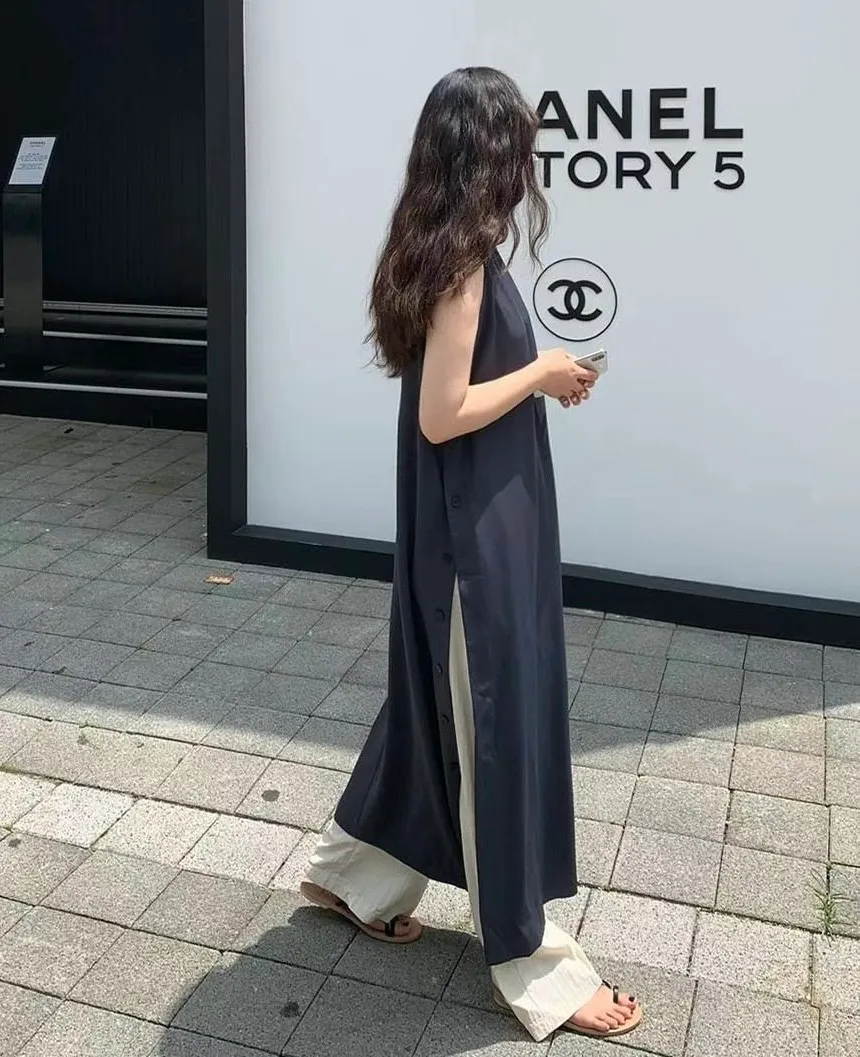 。滑布材質 質感非常好 又很涼爽非常適合春夏🧊。單側排釦設計 可以自行調整開度🔧。屬於不易皺材質✨。可兩穿!當罩衫、洋裝---Made in korea---Model 163/54腰圍68 臀圍90 大腿圍51現貨1-3天內安排寄出預購7-30天工作天(不含假日)內到貨