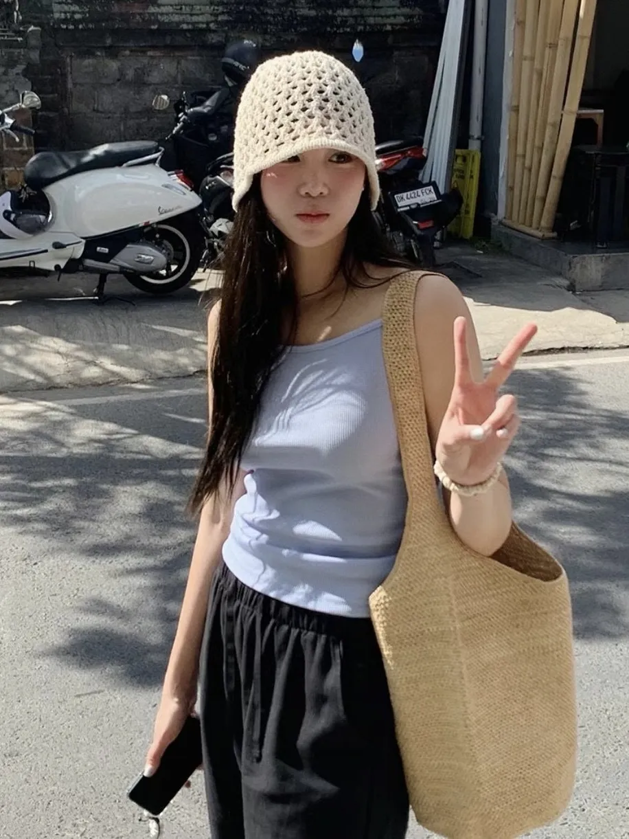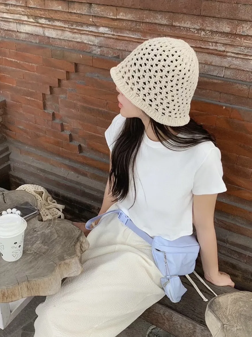 ▻(現貨)正韓🇰🇷休閒可愛!!鏤空針織草帽/1 color