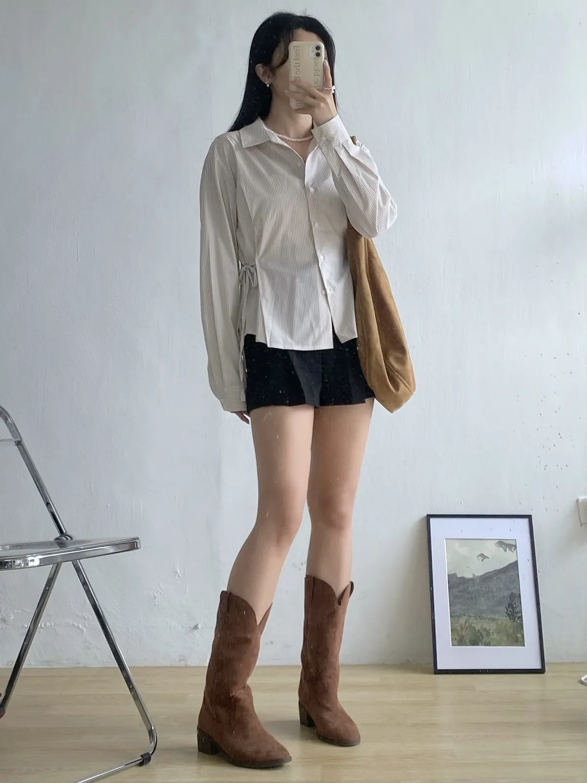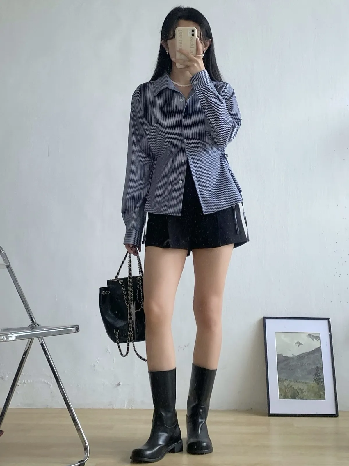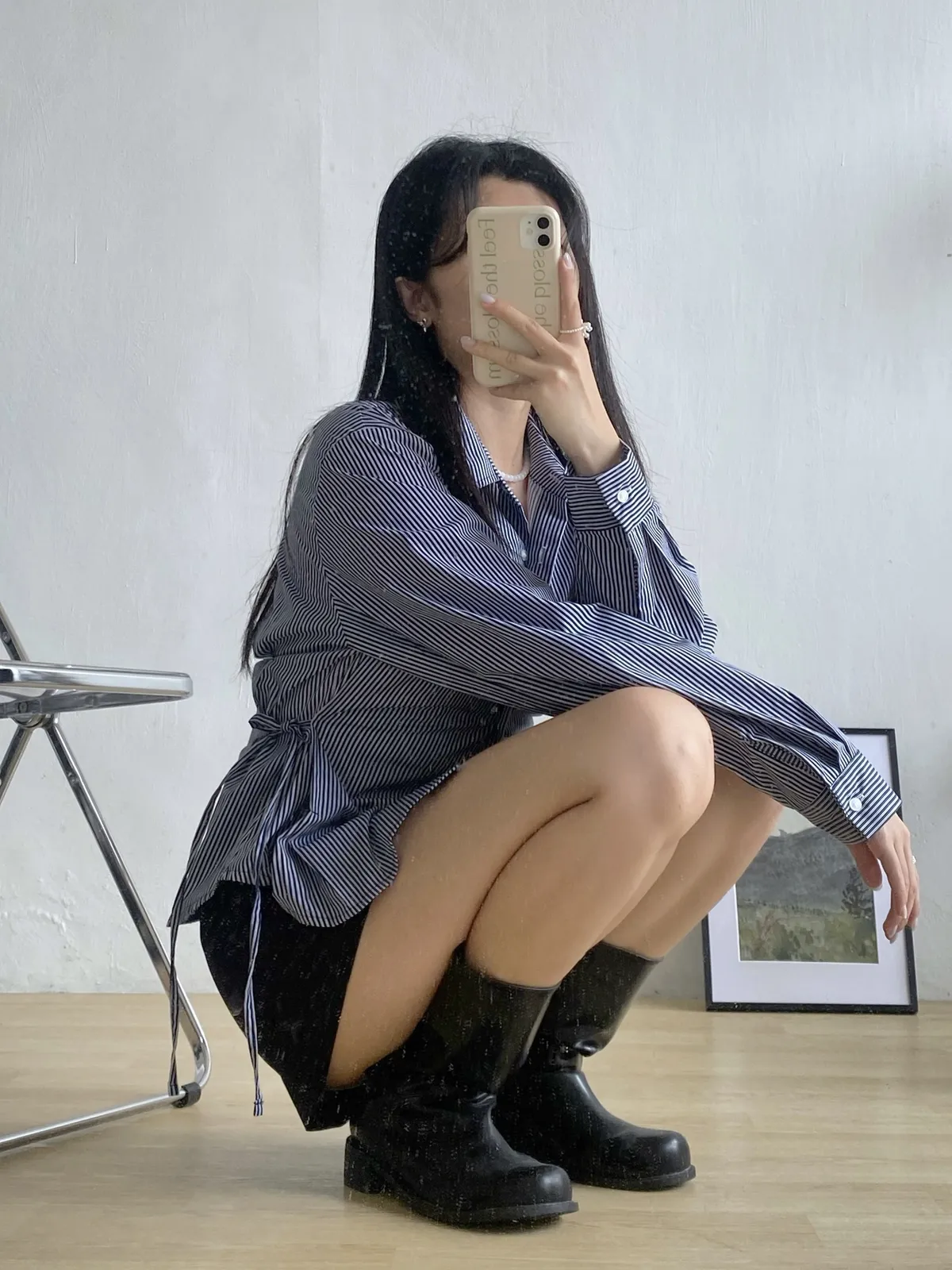 。特色腰圍做綁帶 可以擁有腰身的襯衫!!