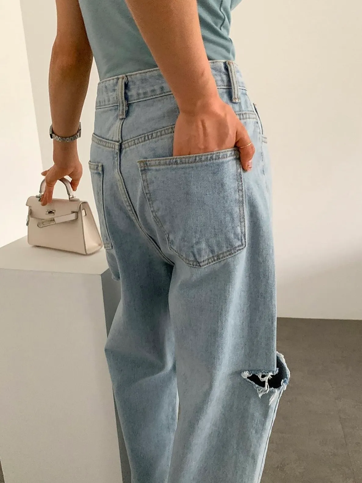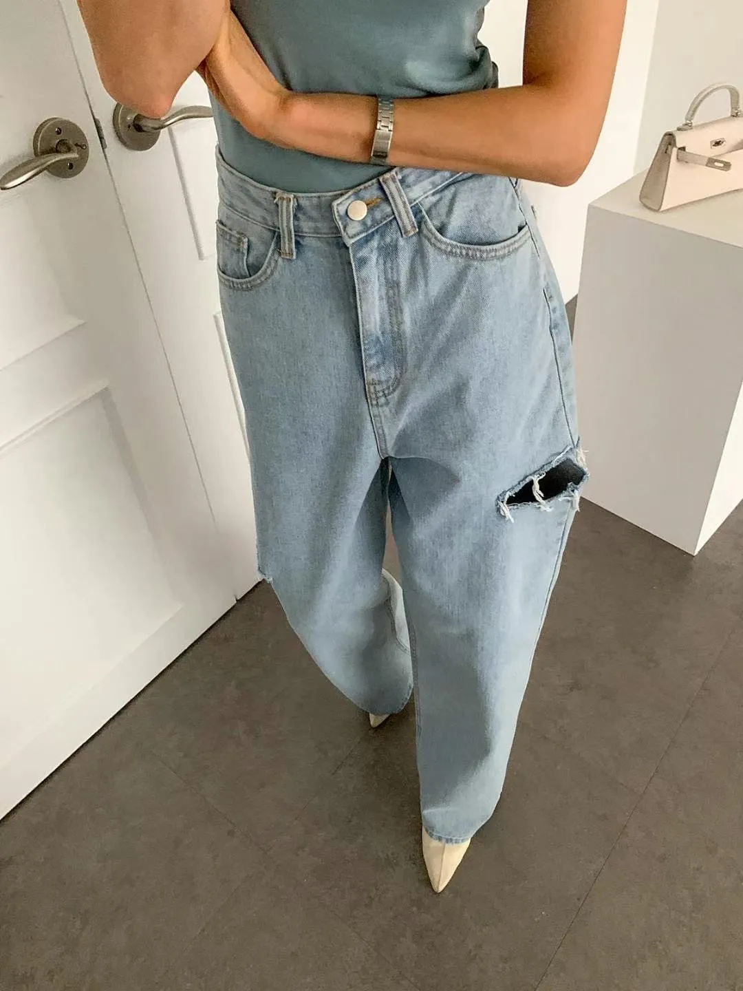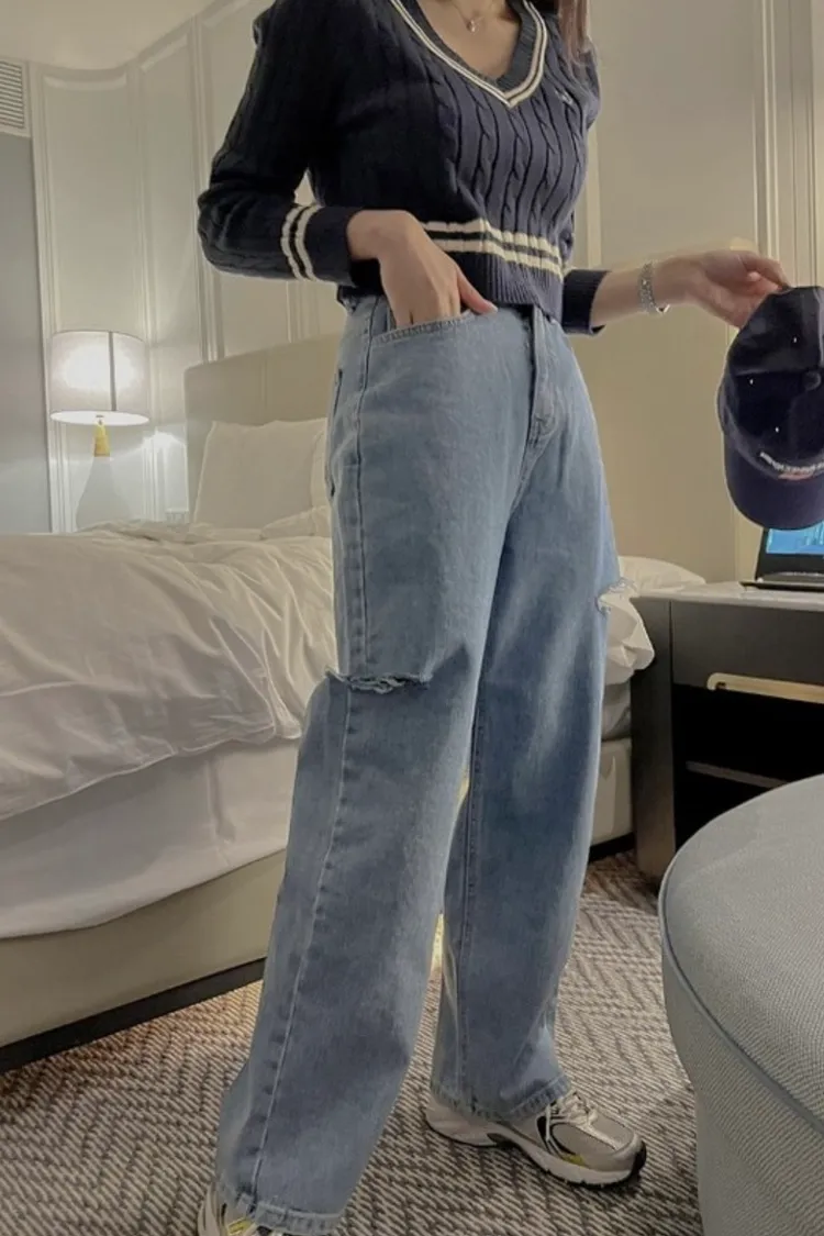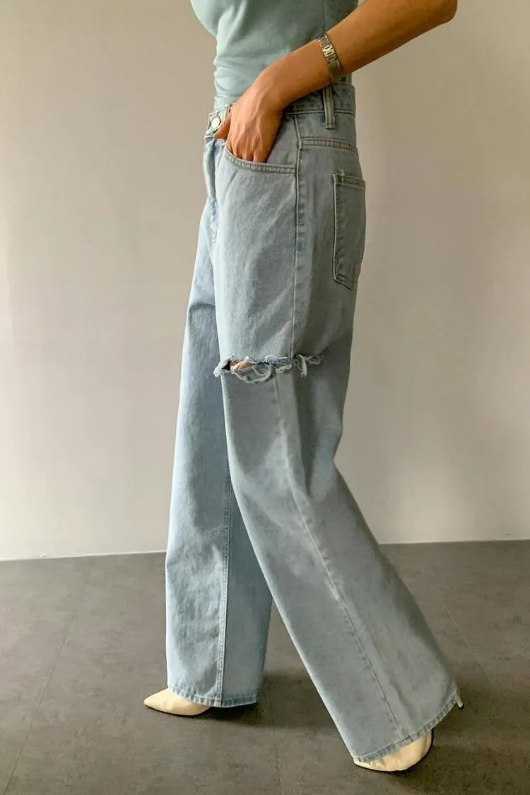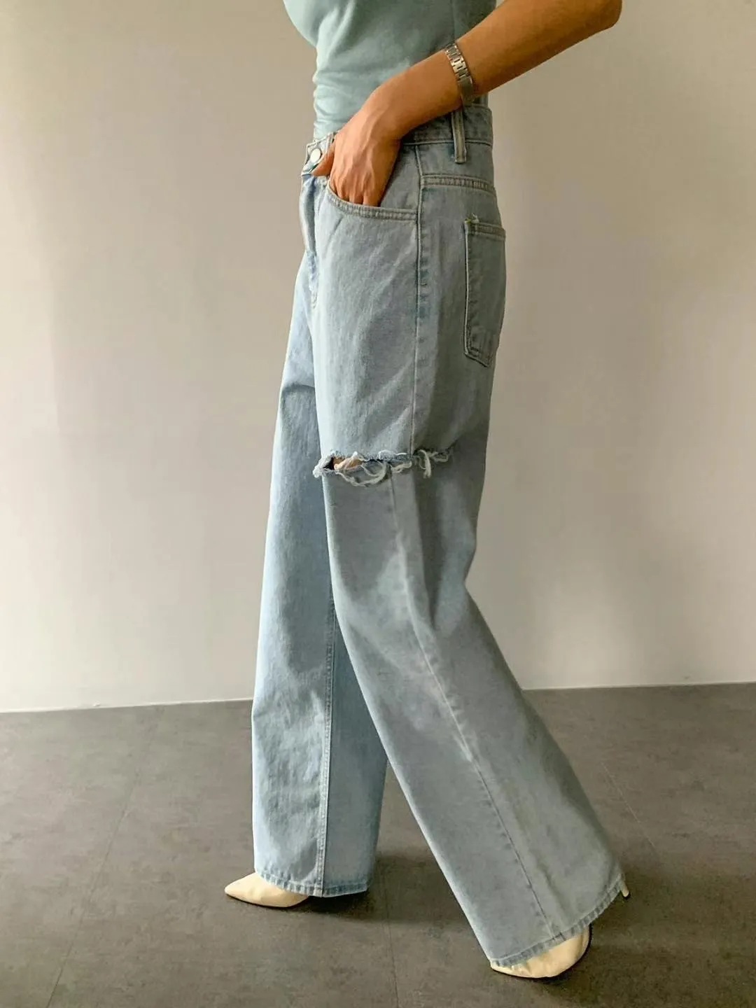 ▻特賣會sale—正韓🇰🇷刷破牛仔寬褲/1 color