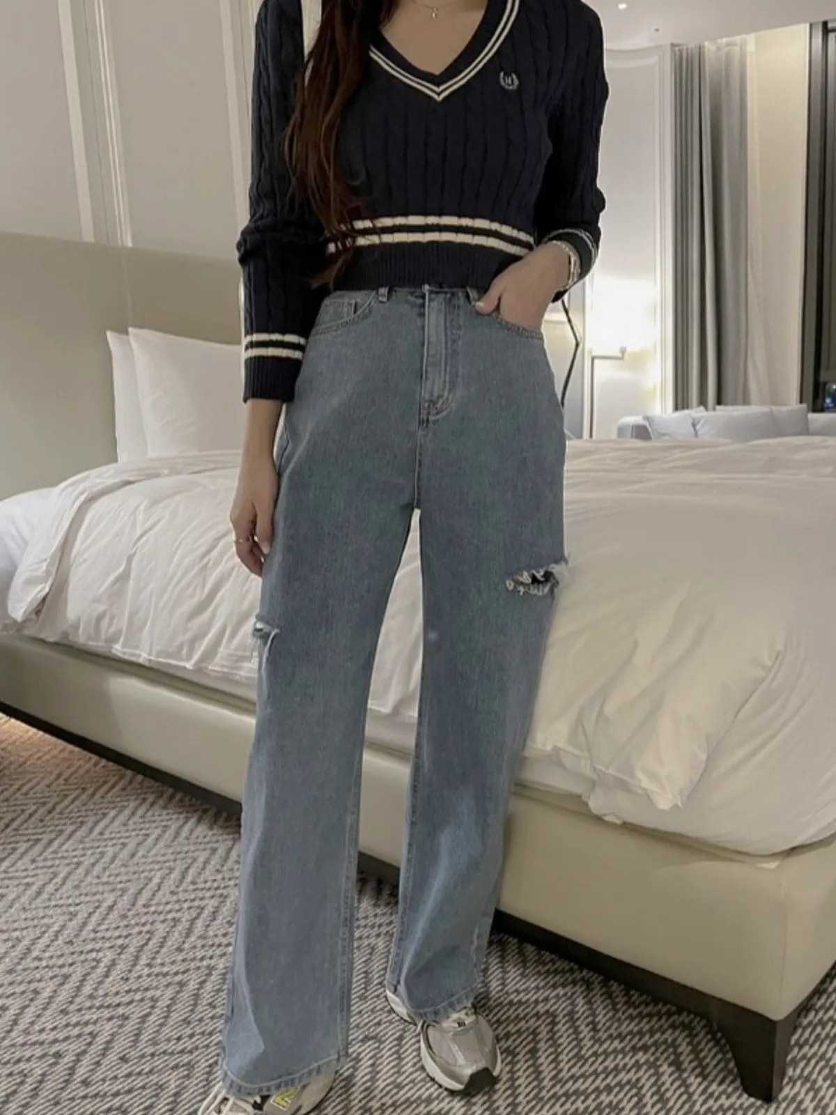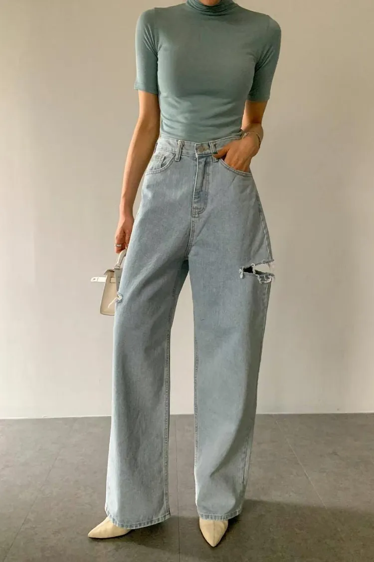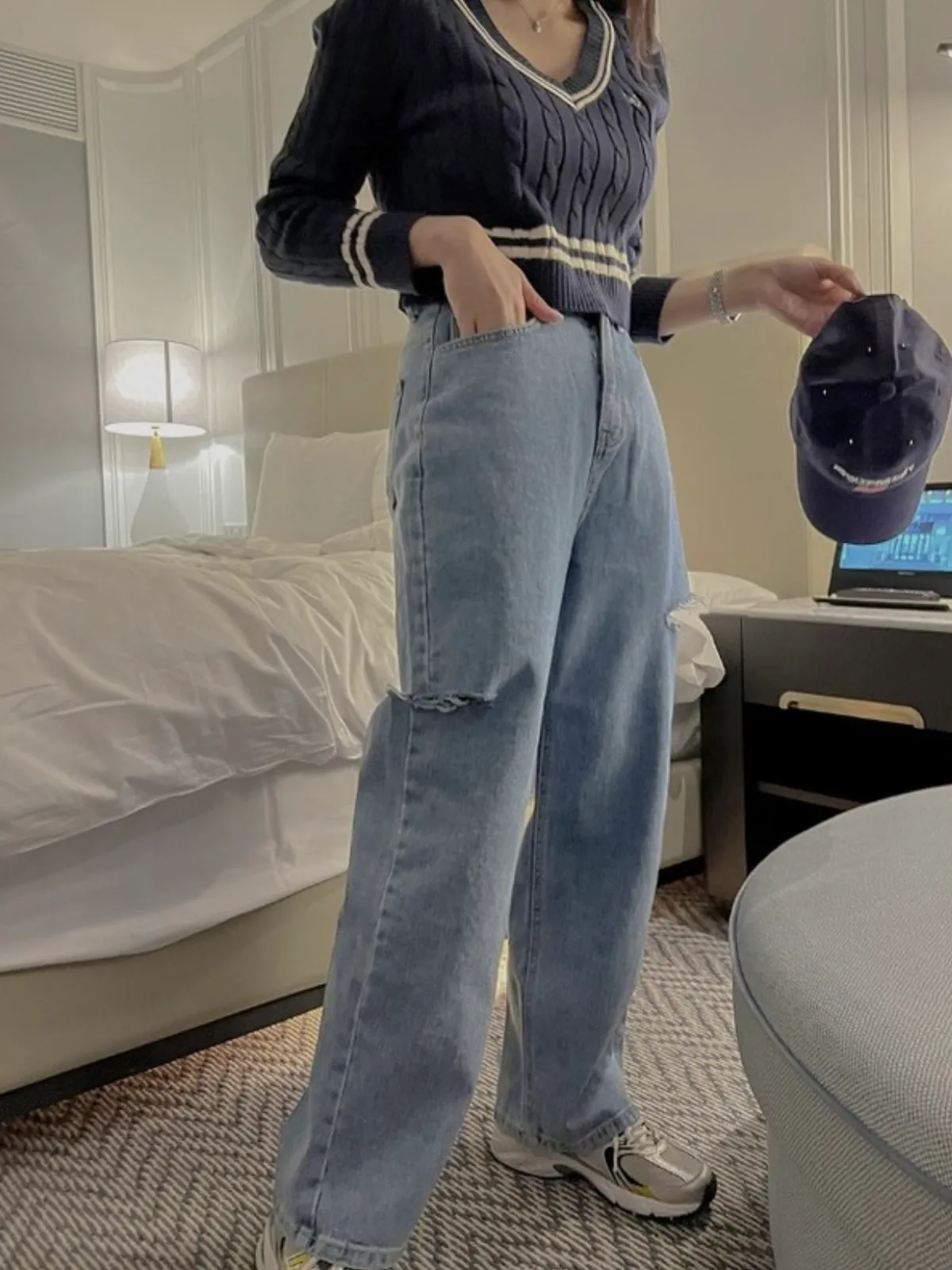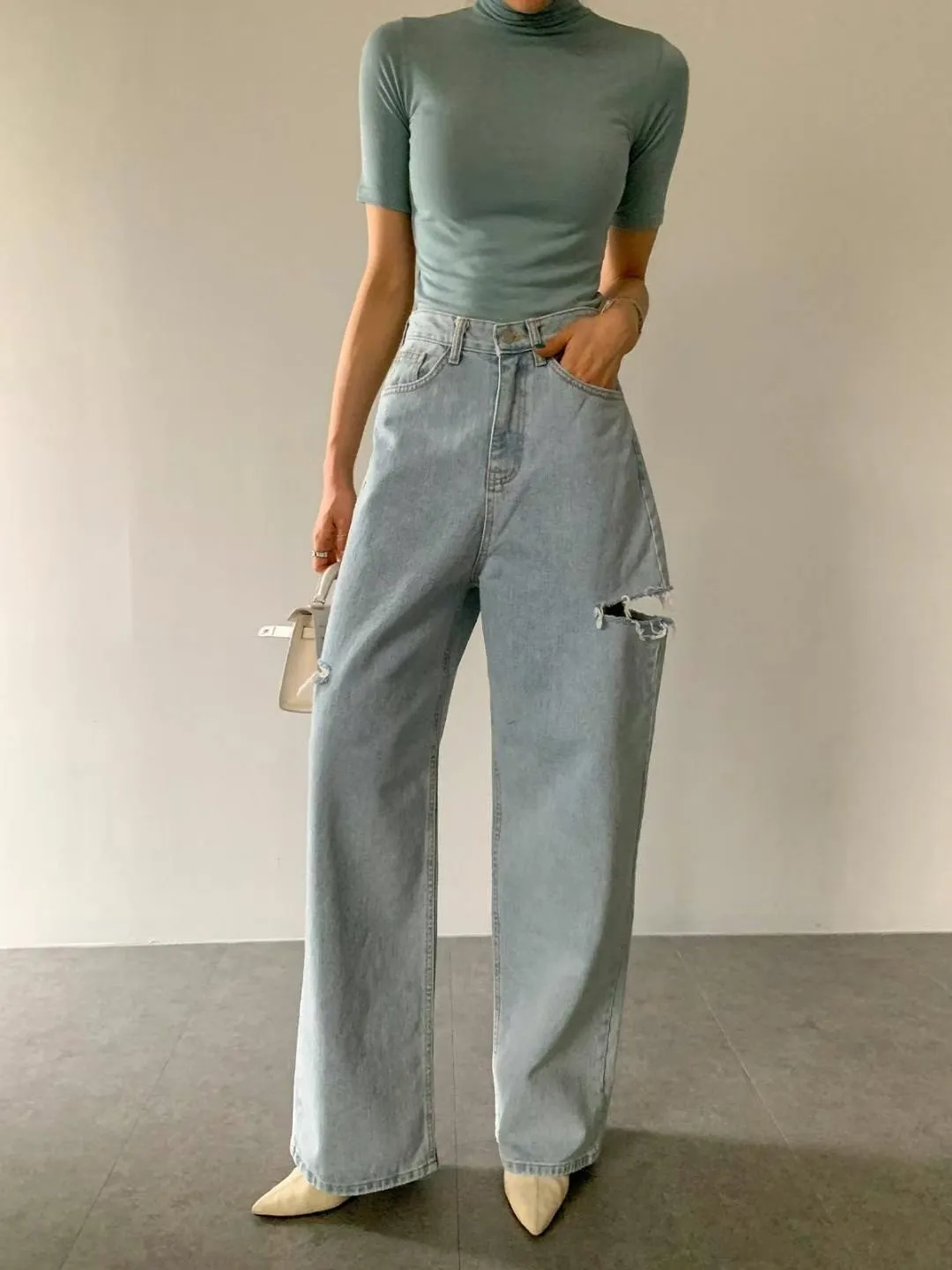 ▻特賣會sale—正韓🇰🇷刷破牛仔寬褲/1 color