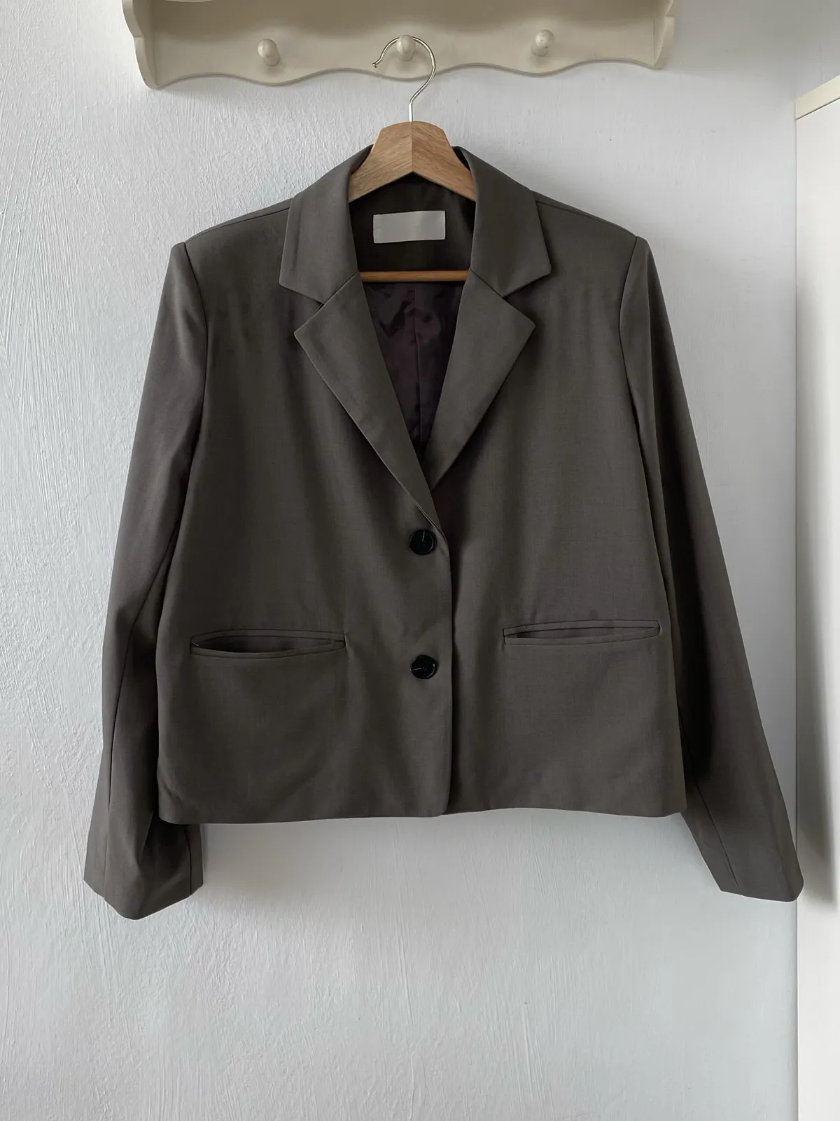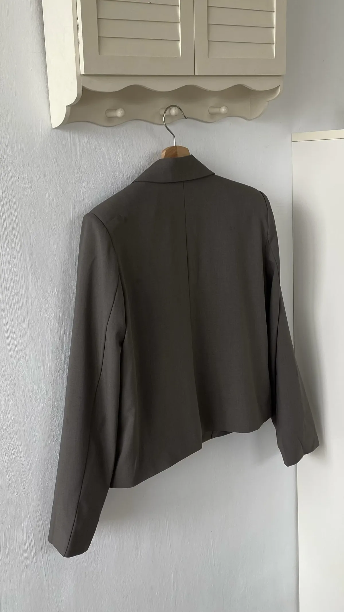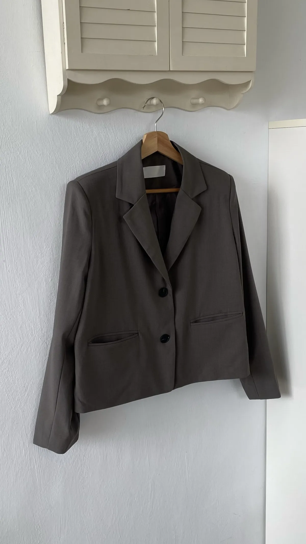 。霧灰色顏色很高級又特別!。長度屬於中長版。材質屬於中間偏薄一點。兩側有口袋~。有墊肩 有做內裡---Made in korea---Model 163/54腰圍68 臀圍90 大腿圍51現貨1-3天內安排寄出預購7-30天工作天(不含假日)內到貨
