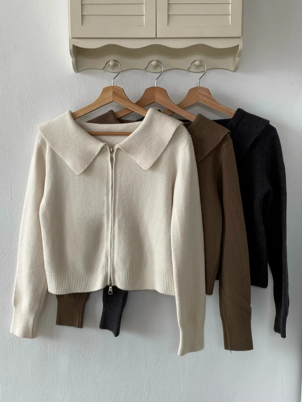 ▻(現貨)自帶披肩!雙拉鍊翻領針織上衣/3 colors