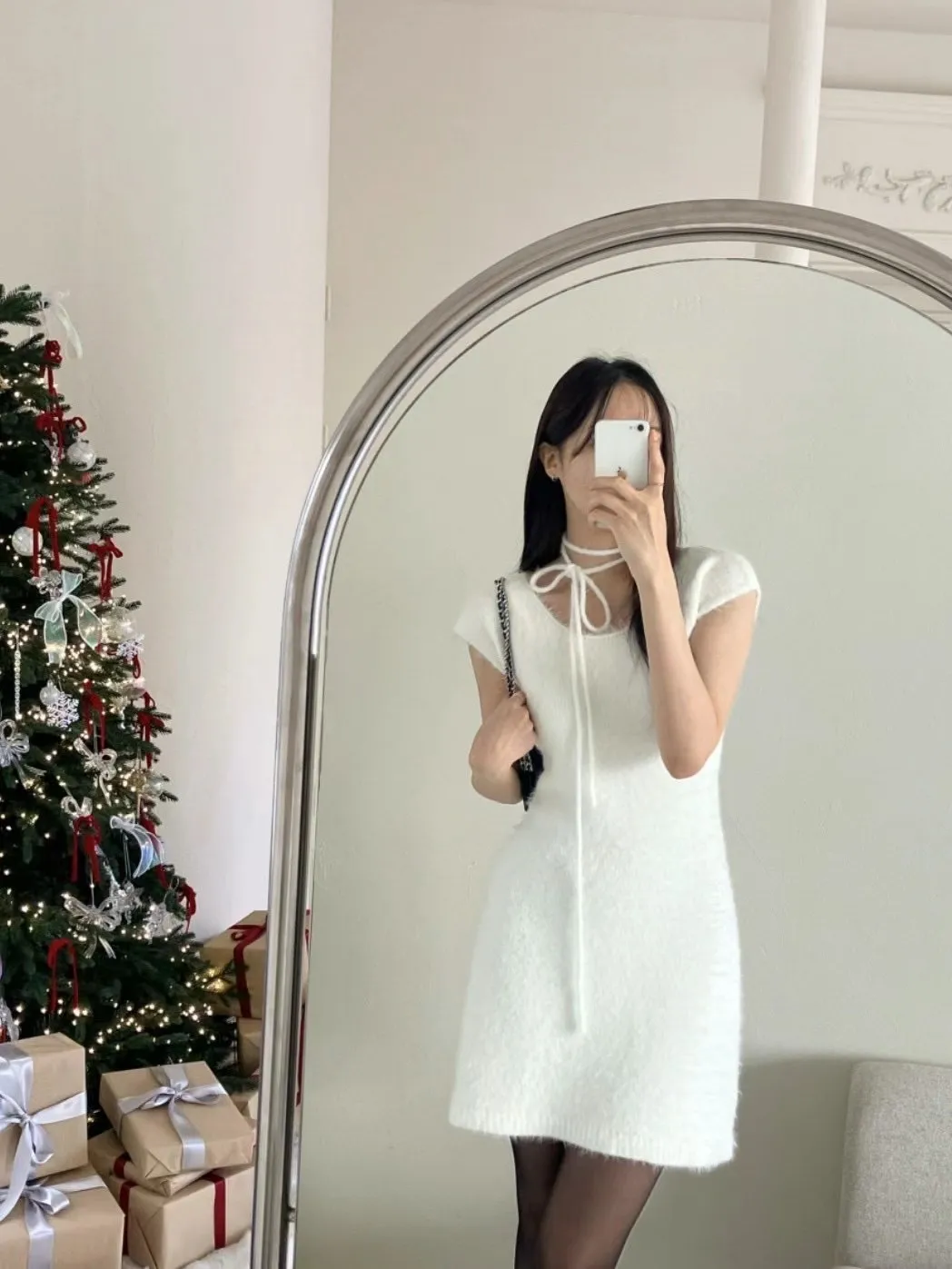 。整件帶有彈性的毛衣~。做腰身順身 凸顯好身材🌹。附贈綁帶 可以當項鍊也可以綁在腰圍當造型✨。材質舒服柔軟不會刺膚!。版型屬於合身不緊繃🌶️。領口U型也不會太低胸。白色也不太會透👌🏻---Made in korea---Model 163/54腰圍68 臀圍90 大腿圍51現貨1-3天內安排寄出預購7-30天工作天(不含假日)內到貨