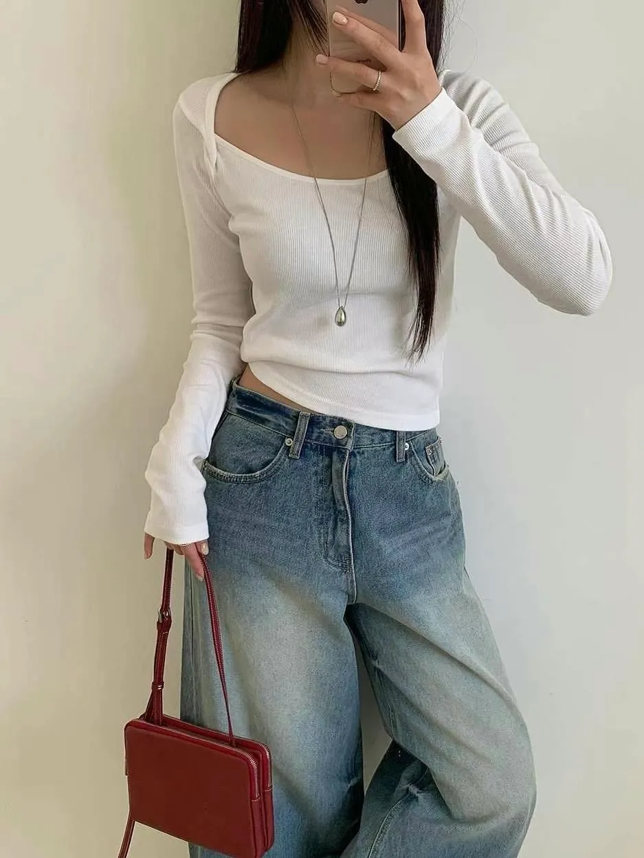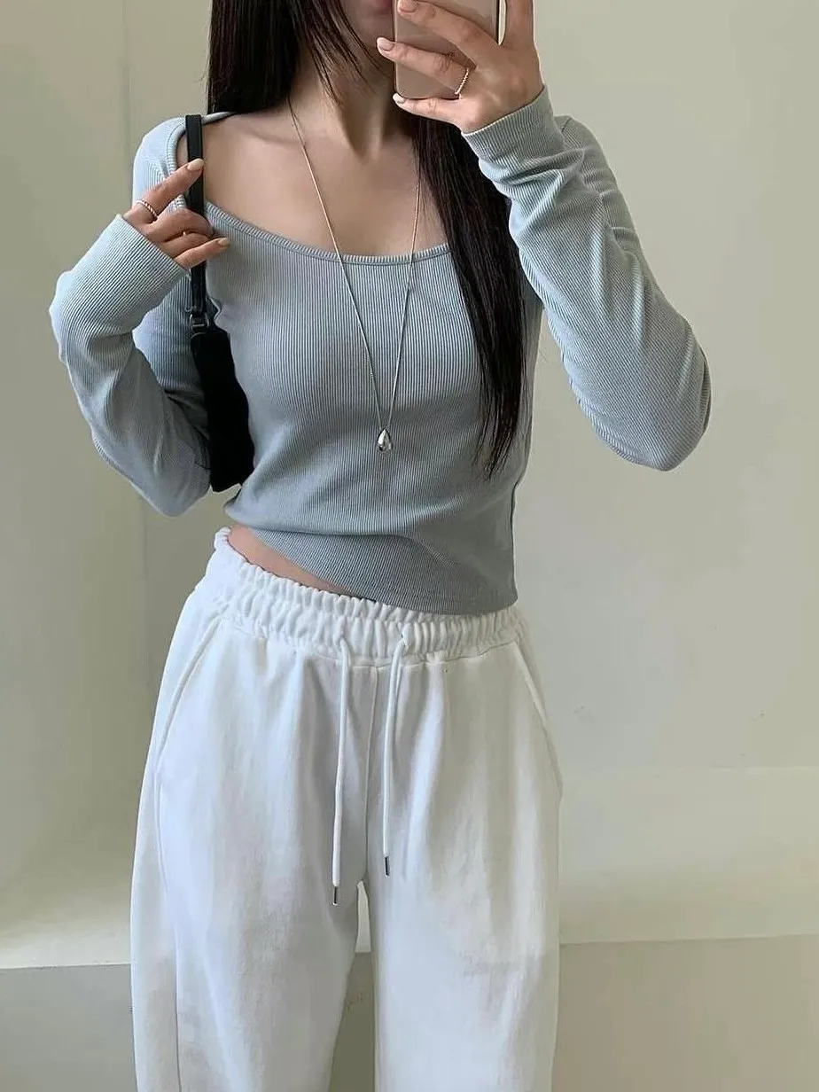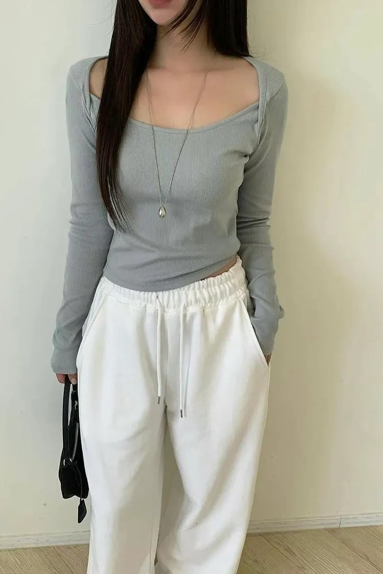 。針織螺紋材質🧶。領口特殊剪裁 不易撞款✨可以顯露鎖骨🌶️單穿不無聊!。有彈性 穿起來不緊繃👌🏻---Made in korea---Model 163/54腰圍68 臀圍90 大腿圍51現貨1-3天內安排寄出預購7-30天工作天(不含假日)內到貨