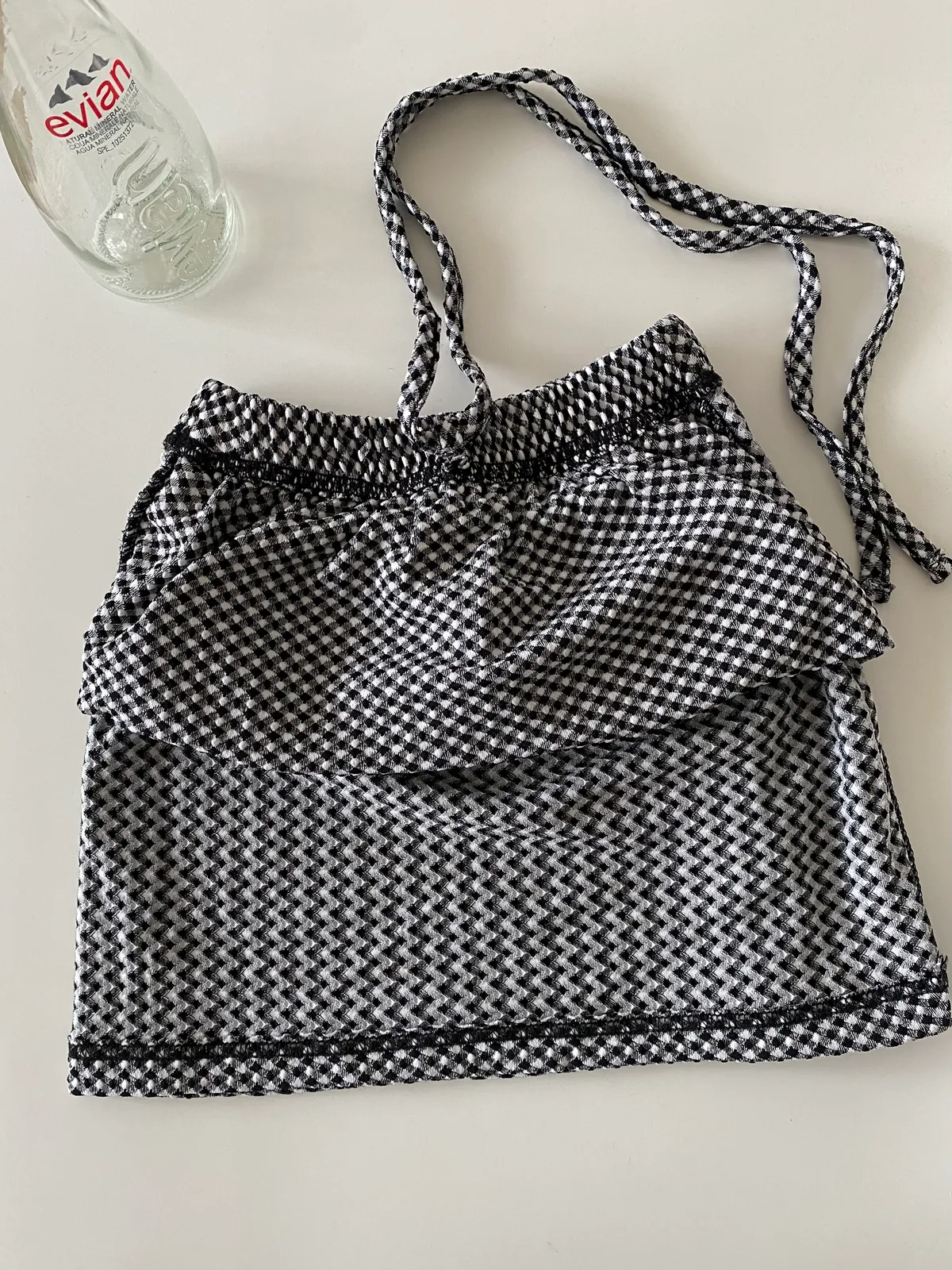 。裡面有做bra!胸墊是做薄款的胸墊。穿起來包覆感也夠✨胸口是做鬆緊帶 也不會覺得很勒👌🏻。綁帶是做可拆式可用可不用 可以綁脖也可以綁在胸口~---Made in korea---Model 163/54腰圍68 臀圍90 大腿圍51現貨1-3天內安排寄出預購7-30天工作天(不含假日)內到貨
