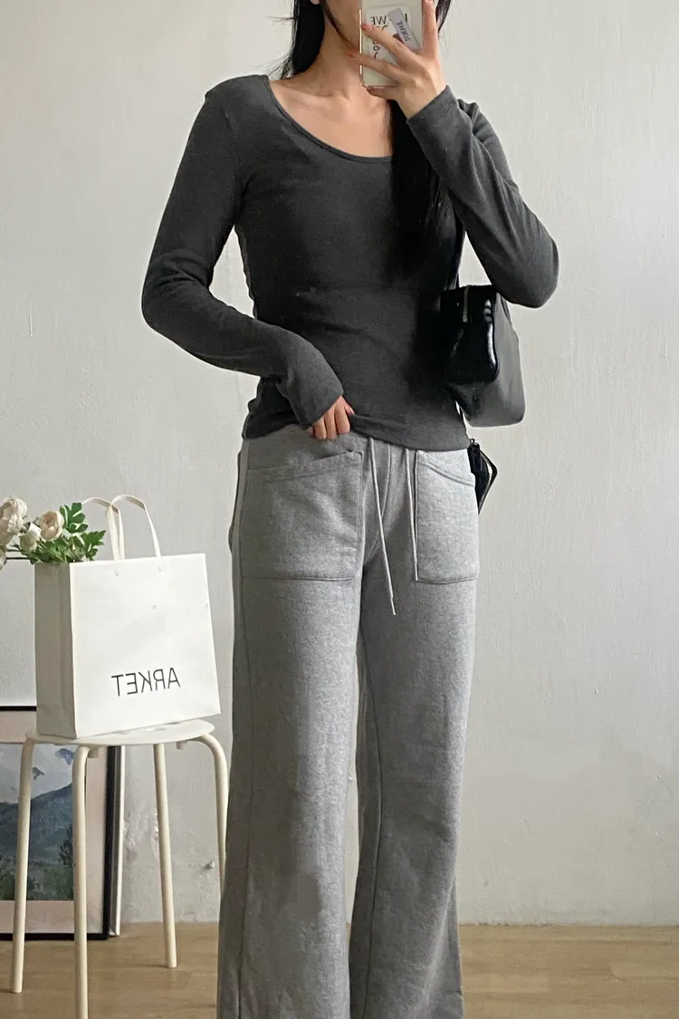 ▻(現貨)正韓🇰🇷可包色🦭U領基礎磨毛上衣/4 colors