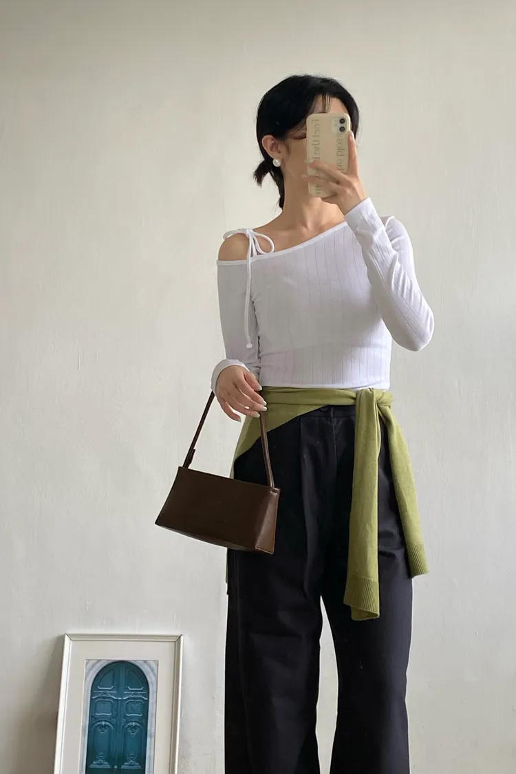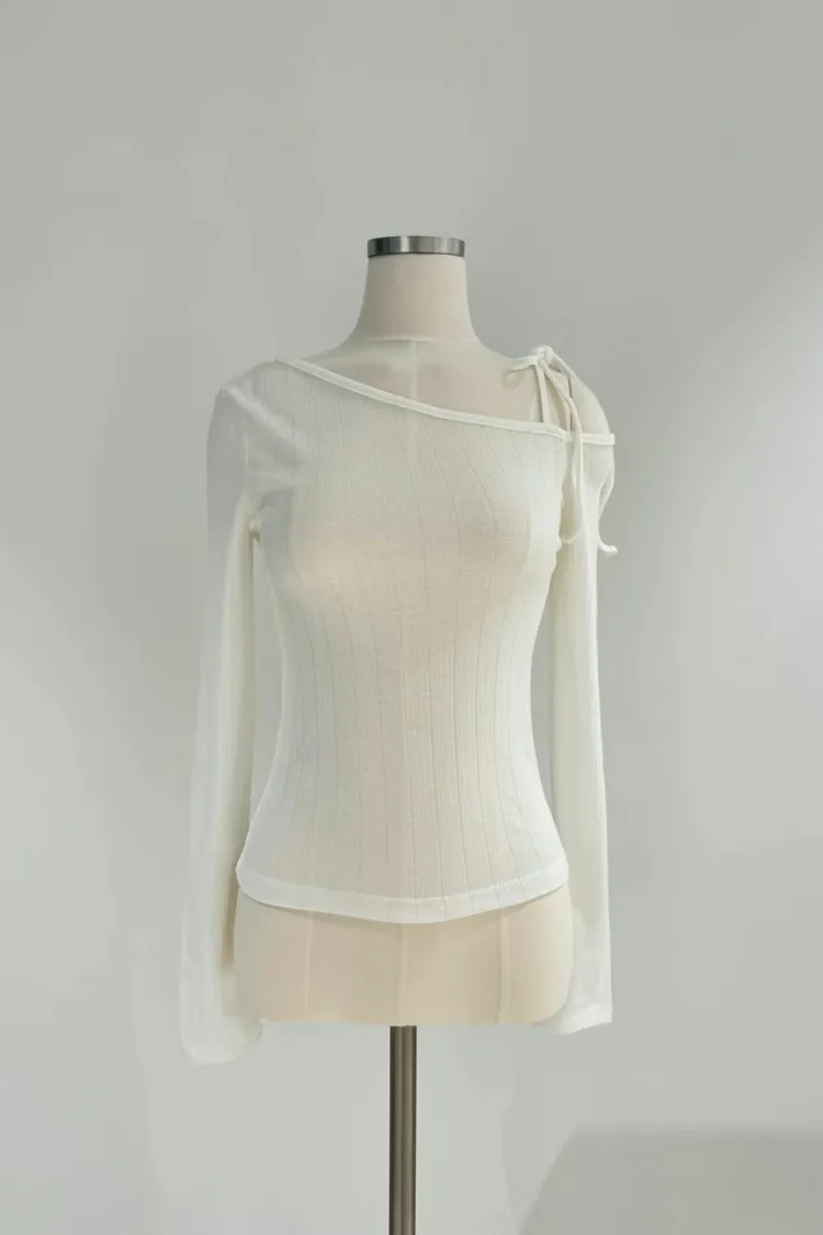 ▻[𝐍𝐄𝐖](現貨)正韓🇰🇷蝴蝶結單肩膀帶上衣/3 colors