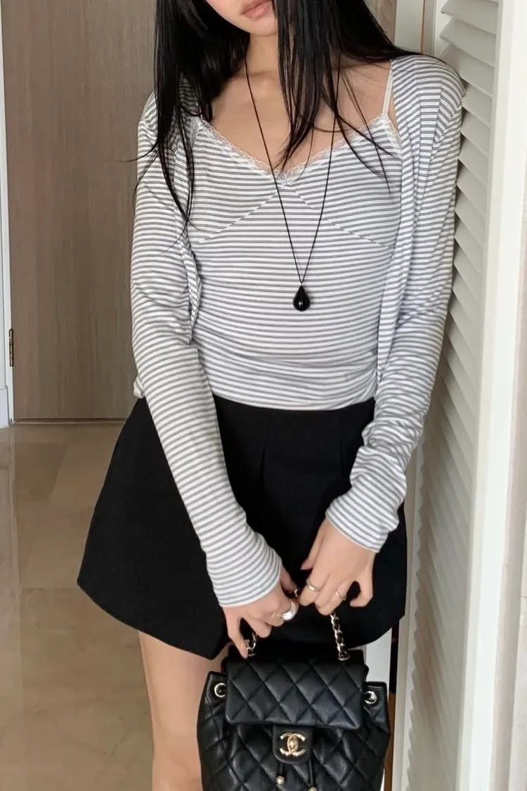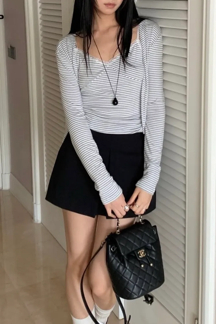 意外的條紋搭配蕾絲也不奇怪🤩