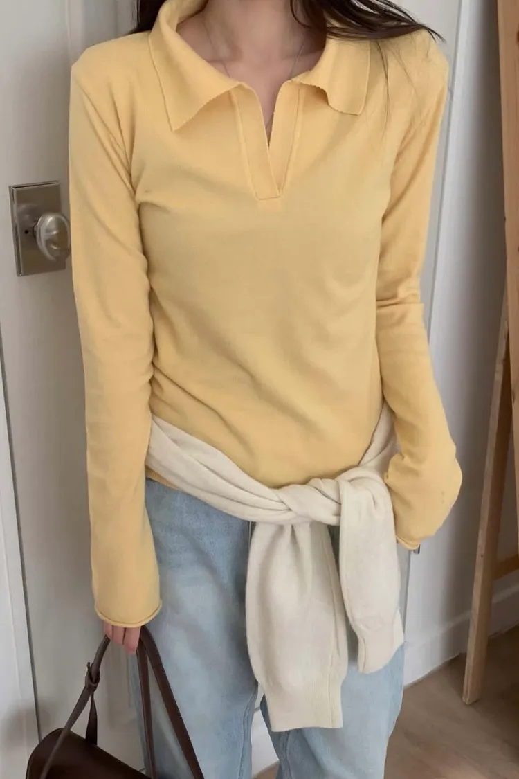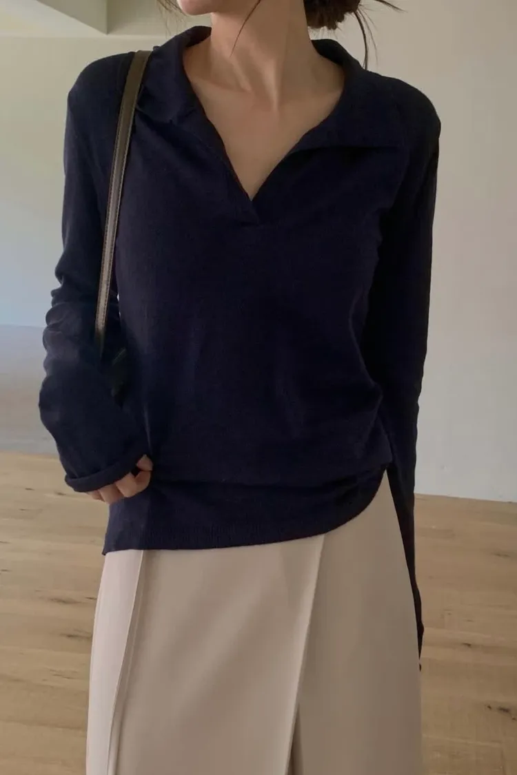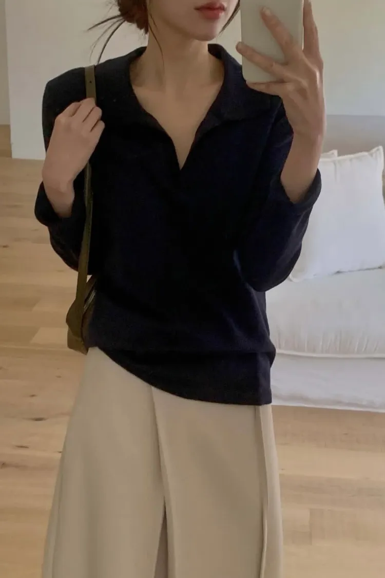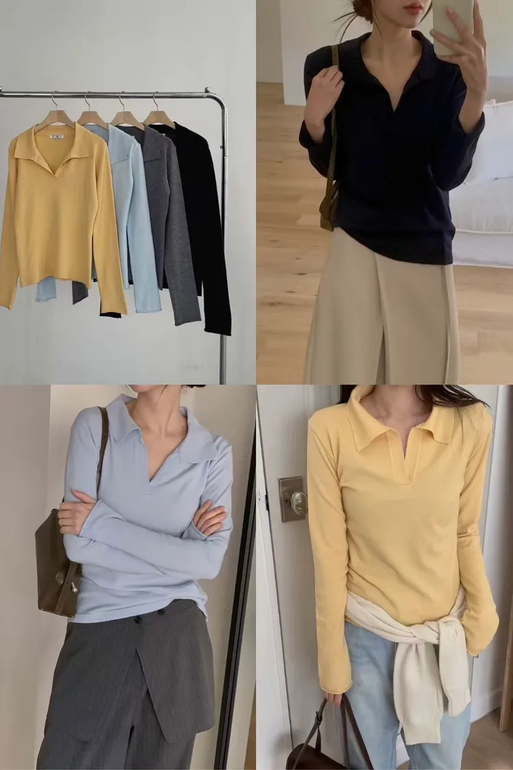 ▻[𝐍𝐄𝐖](現貨)正韓🇰🇷成熟女人🥂翻領細針織上衣/4 colors