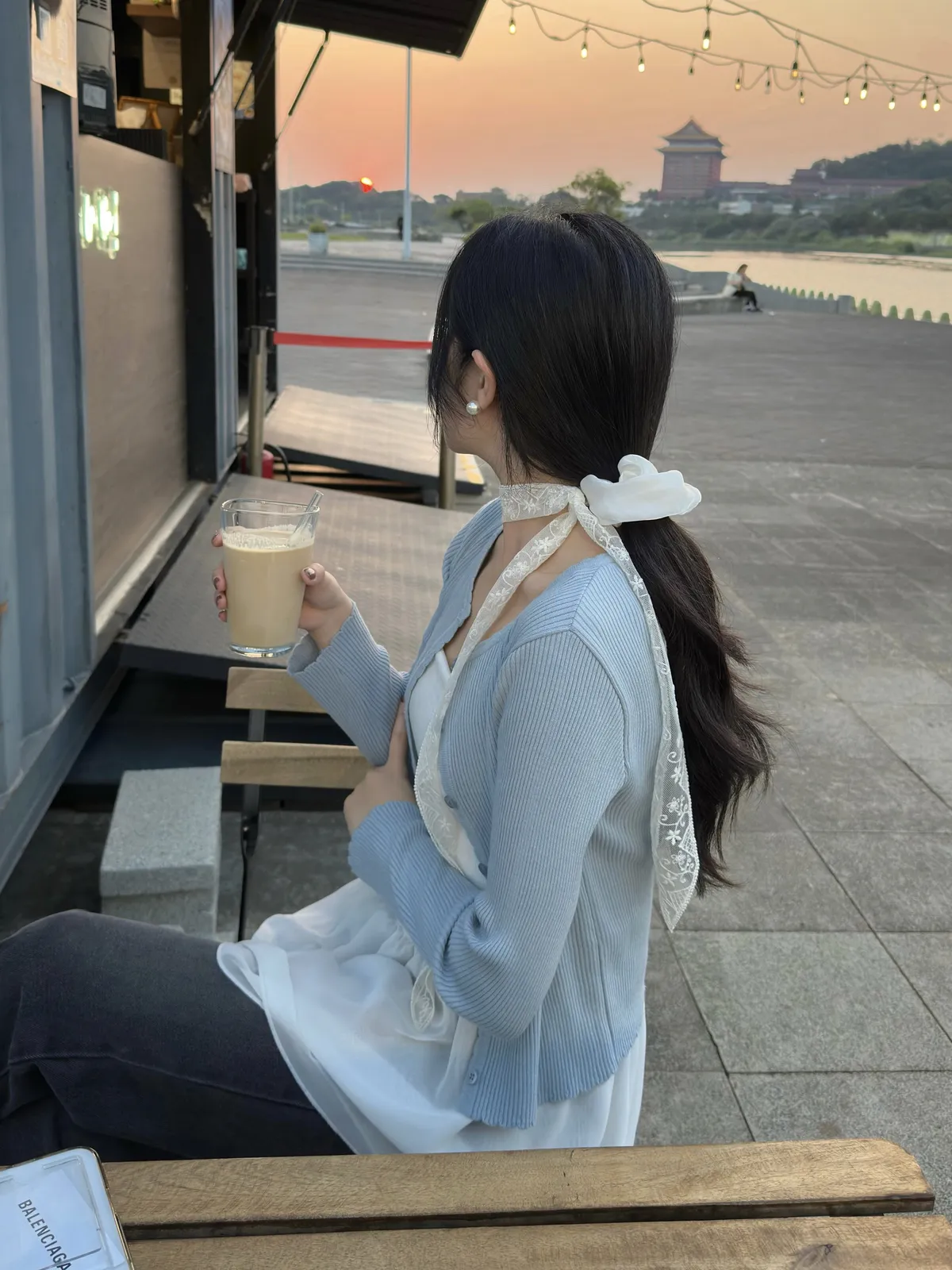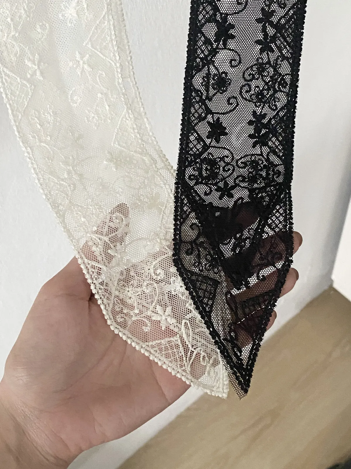 。透膚蕾絲 很仙🫧。網格洞洞設計 也很透氣不悶熱!。polyester 100٪。幫穿搭加分必備!可以替代充當項鍊✨ 這款由韓國廠商設計訂貨交貨 中國代工 會介意者請自行斟酌呦~ 現貨1-3天內安排寄出預購7-30天工作天(不含假日)內到貨