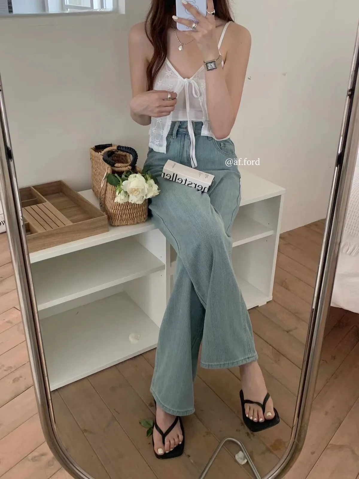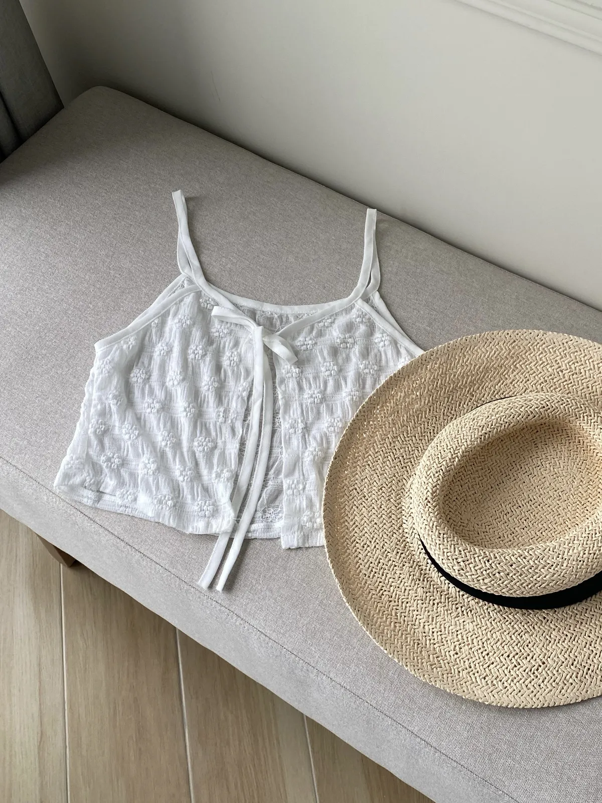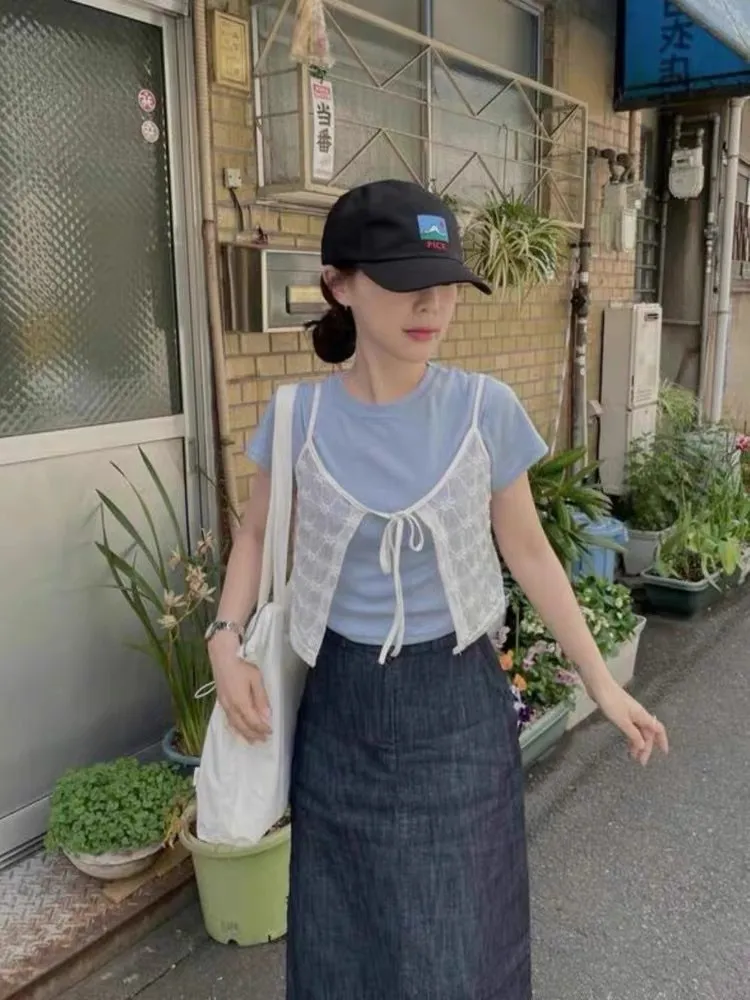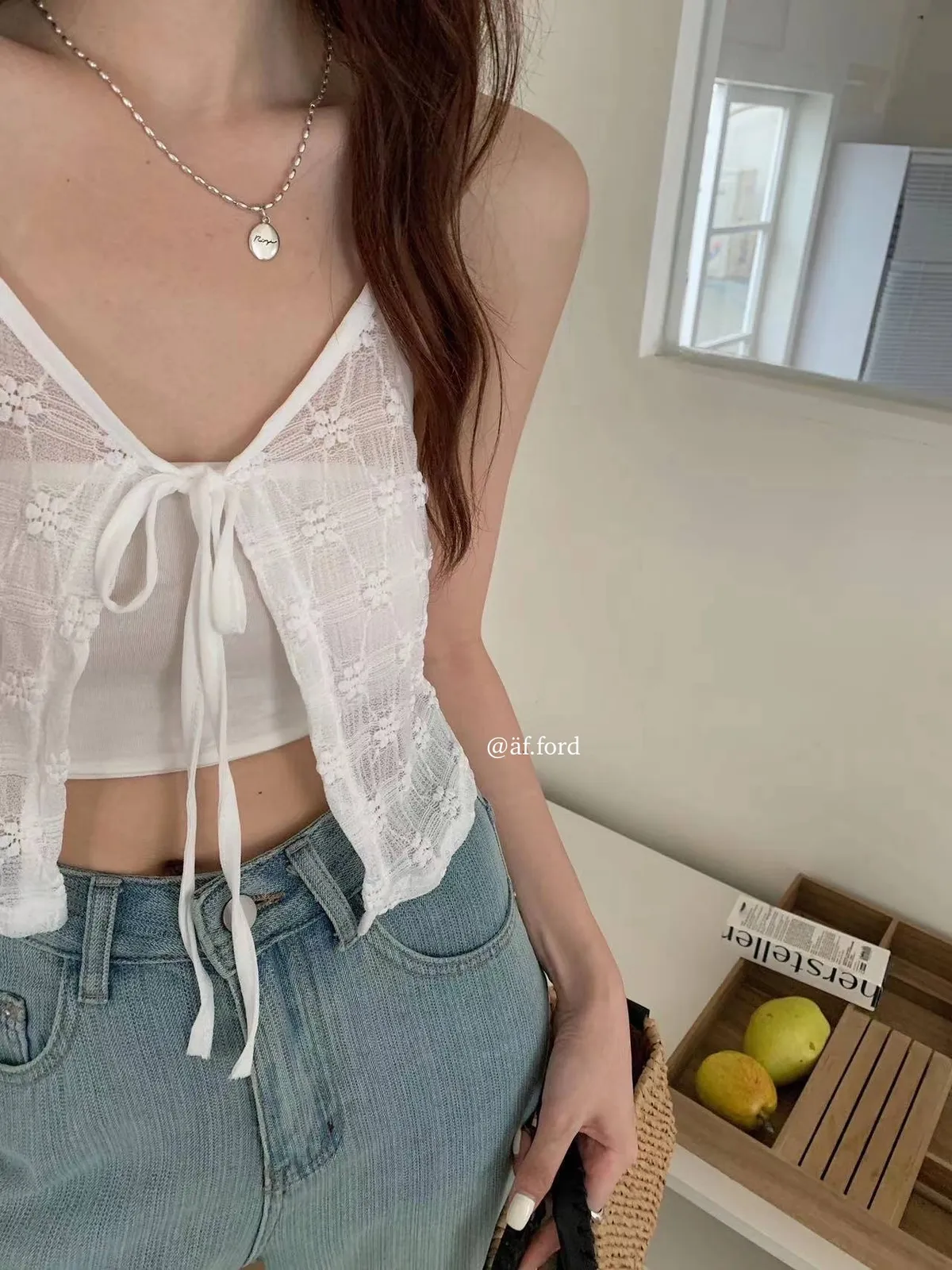 。透膚感🫧可以當背心疊穿增加穿搭層次感🤍。花花設計 也很可愛🌼。整件輕盈不厚重!。裡面可以搭配bra top或一件素Tee------Model 163/54腰圍68 臀圍90 大腿圍51現貨1-3天內安排寄出預購7-30天工作天(不含假日)內到貨