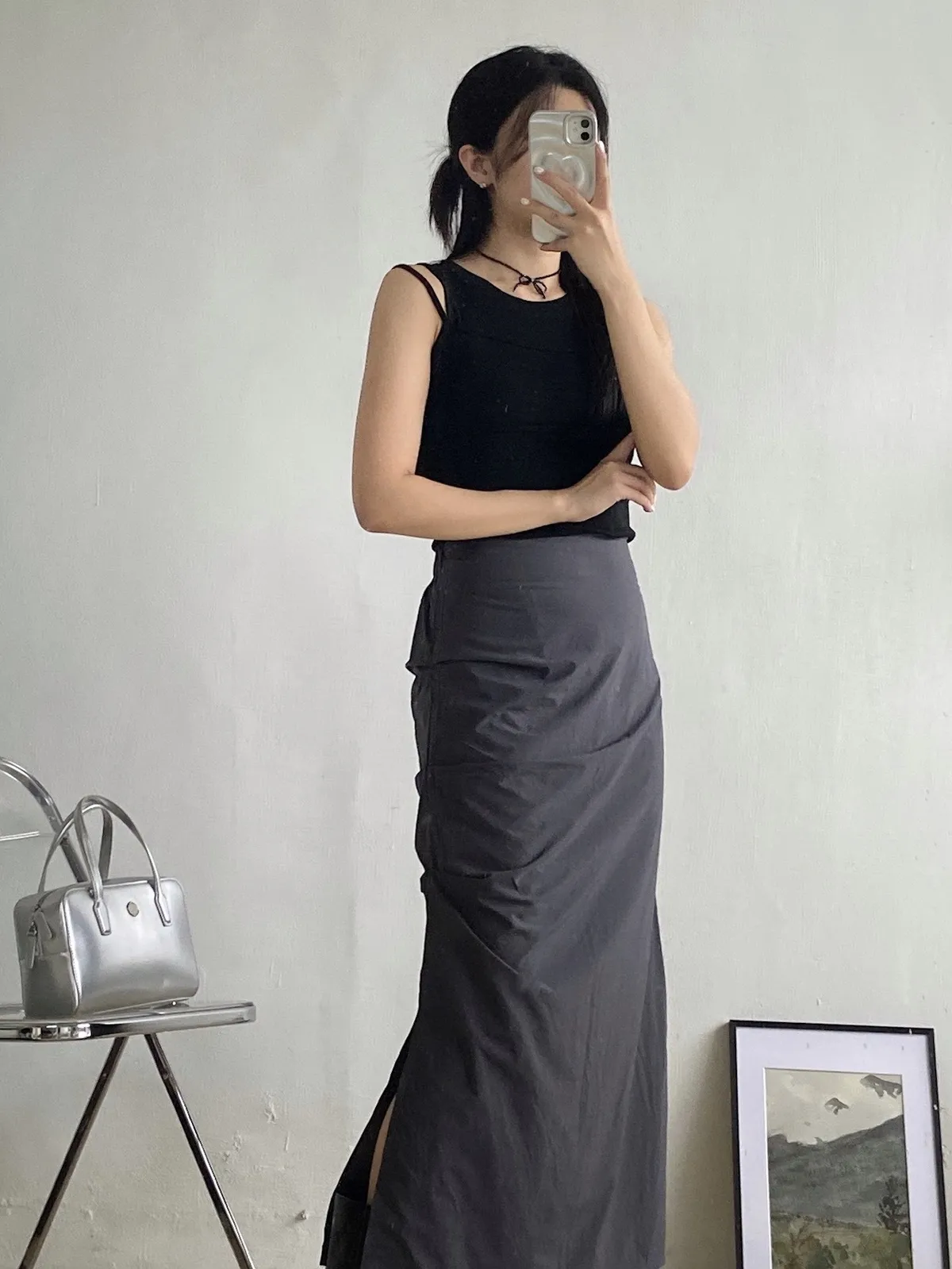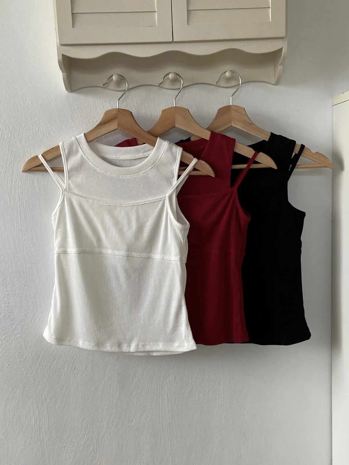 。羅紋針織材質。假兩件 削肩背心+細肩造型不無聊!穿一件就可以擁有層次✨。材質舒適🫶🏻。穿起來合身不緊繃🍒------Model 163/54腰圍68 臀圍90 大腿圍51現貨1-3天內安排寄出預購7-30天工作天(不含假日)內到貨