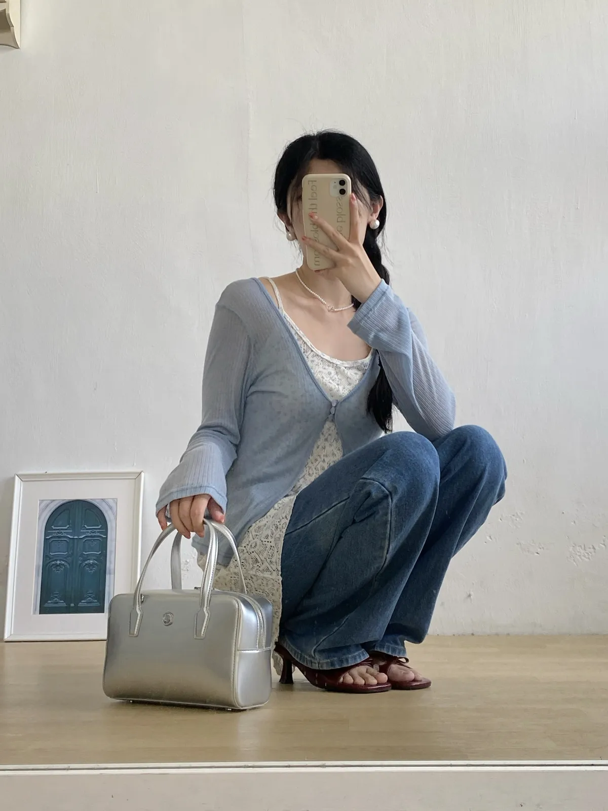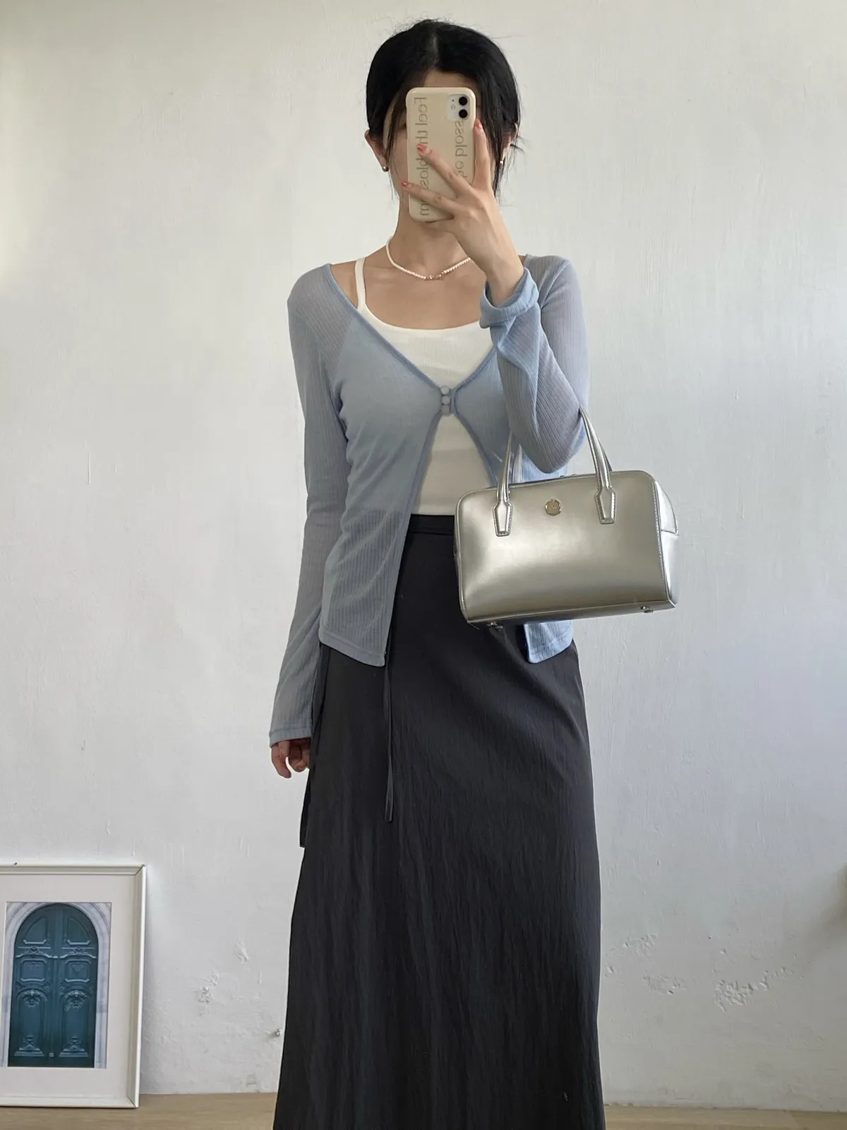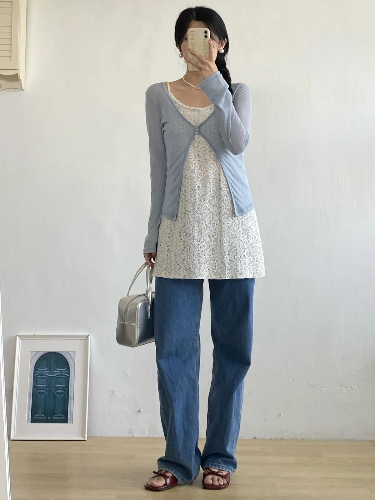 。整件做輕盈透感 很適合春夏🧃。真鈕扣 做霧面玻璃珠感 很漂亮🫧。可以當冷氣房小外套!。不喜歡露手臂女孩必收!!。帶有微彈性 版型屬於剛好合身 但不會緊繃🫶🏻。當小外套做層次感很好看🩵---Made in korea---Model 163/54腰圍68 臀圍90 大腿圍51現貨1-3天內安排寄出預購7-30天工作天(不含假日)內到貨