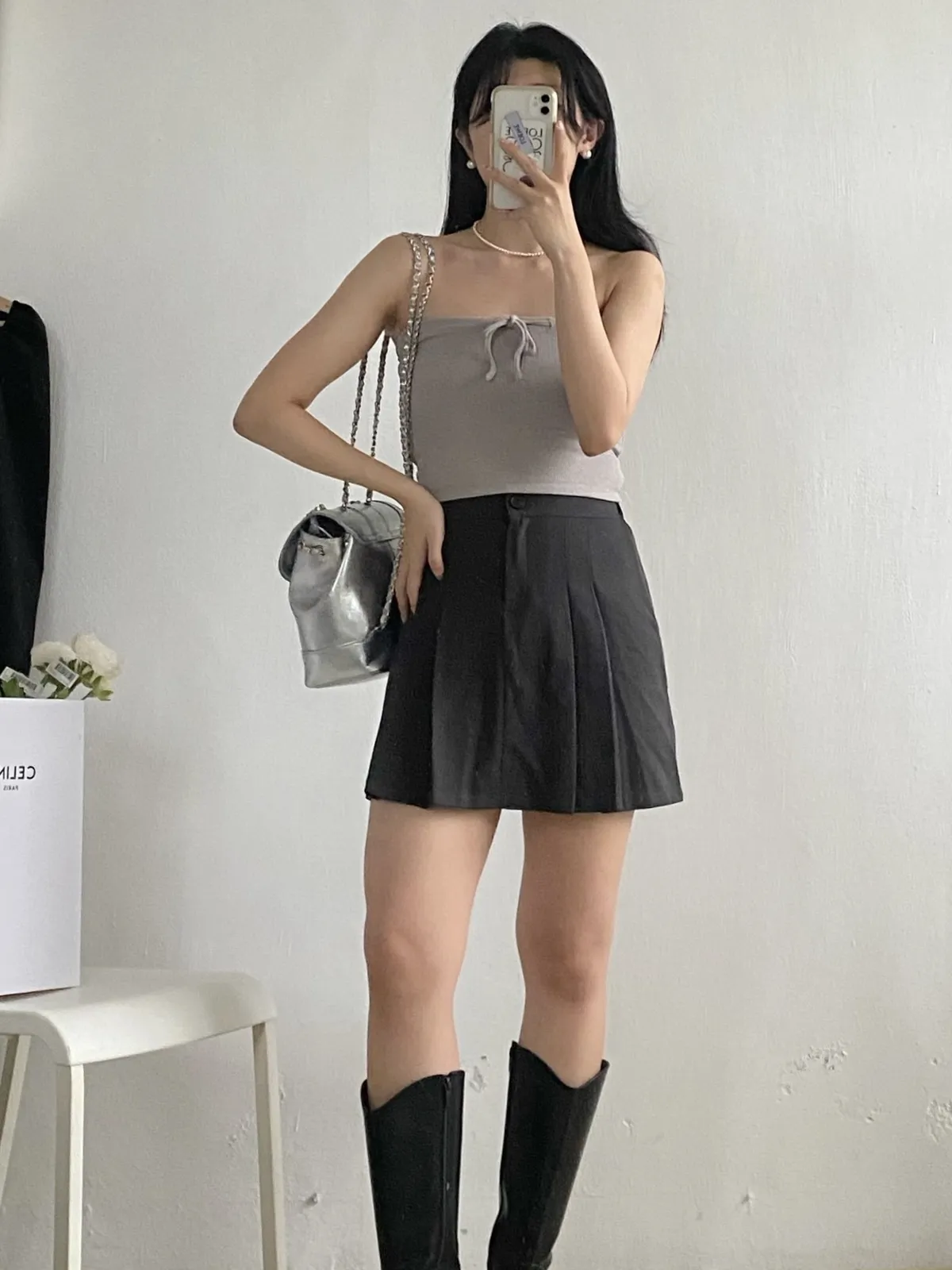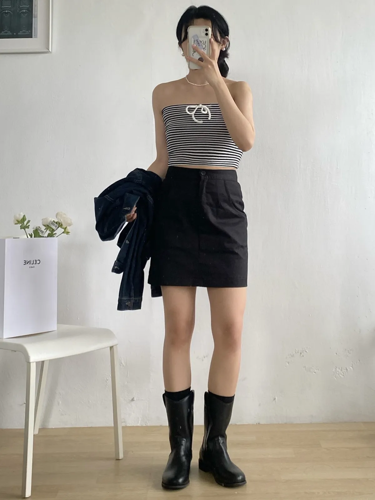 。整件有彈性!穿起來合身不緊繃👌🏻。胸口的綁帶可以自行調整🔧。條紋是經典不敗不退流行的元素❤️🔥素色是日常百搭👑。平口可以單穿很辣🌶️也可以搭配外套當內搭~ ------Model 163/54腰圍68 臀圍90 大腿圍51現貨1-3天內安排寄出預購7-30天工作天(不含假日)內到貨